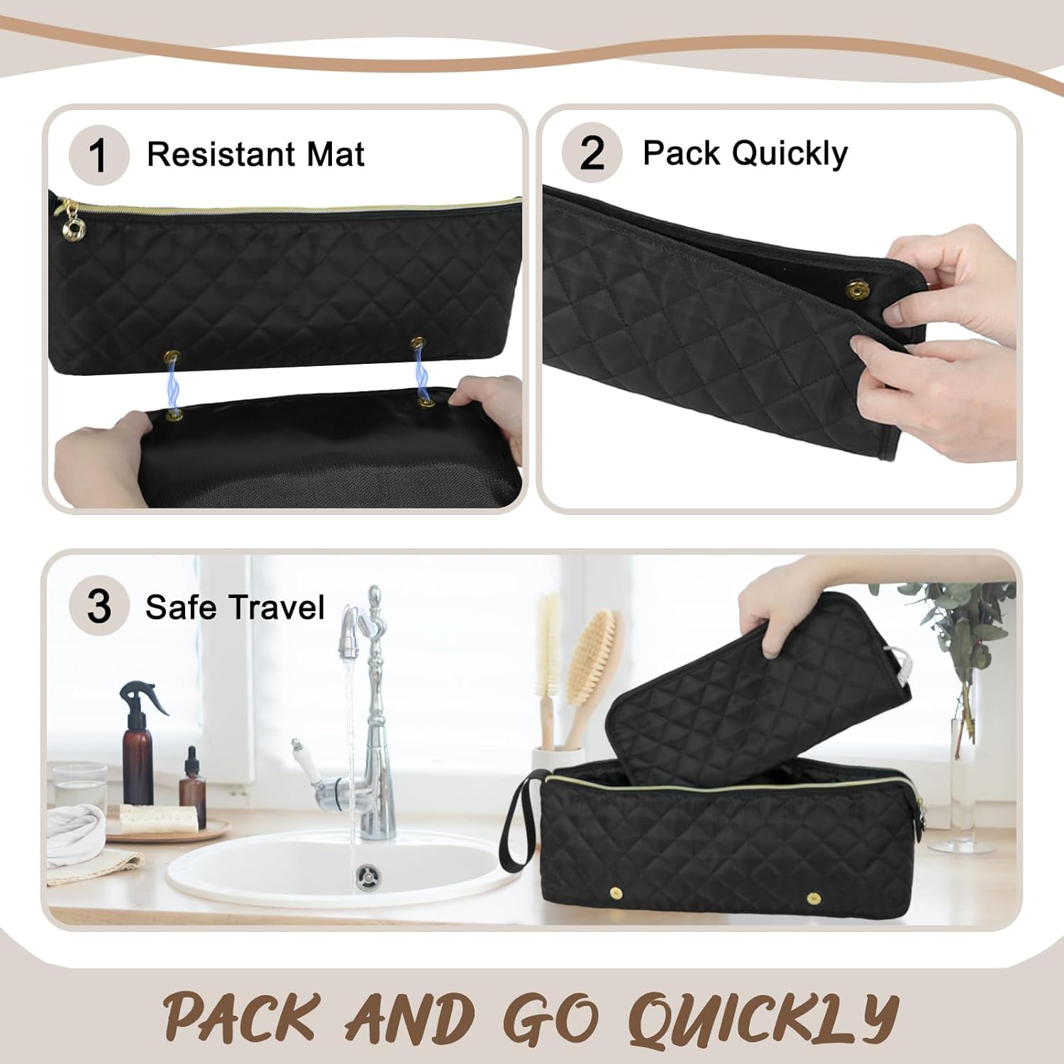 【Multipurpose Hair Tools Travel Bag】This 2 in 1 hair tool travel bag can be used to hold various hair styling tools, such as flat irons, curling irons, hair straighteners, hairbrushes, small hair dryers and other styling accessories, etc.