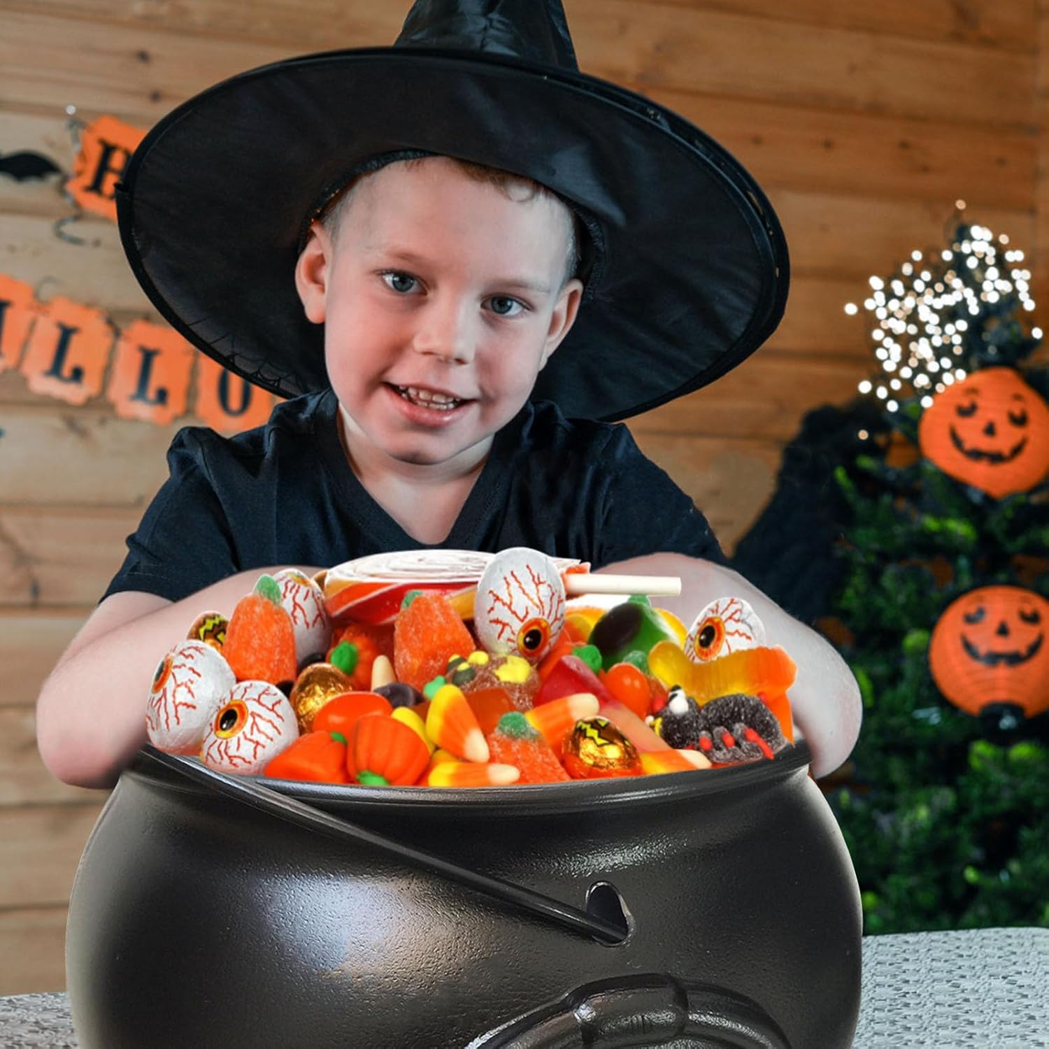【Portable Handle】: This lightweight cauldron candy bowl comes with built-in handle, making it easy to carry and take with you to Halloween events. (No assembly needed)