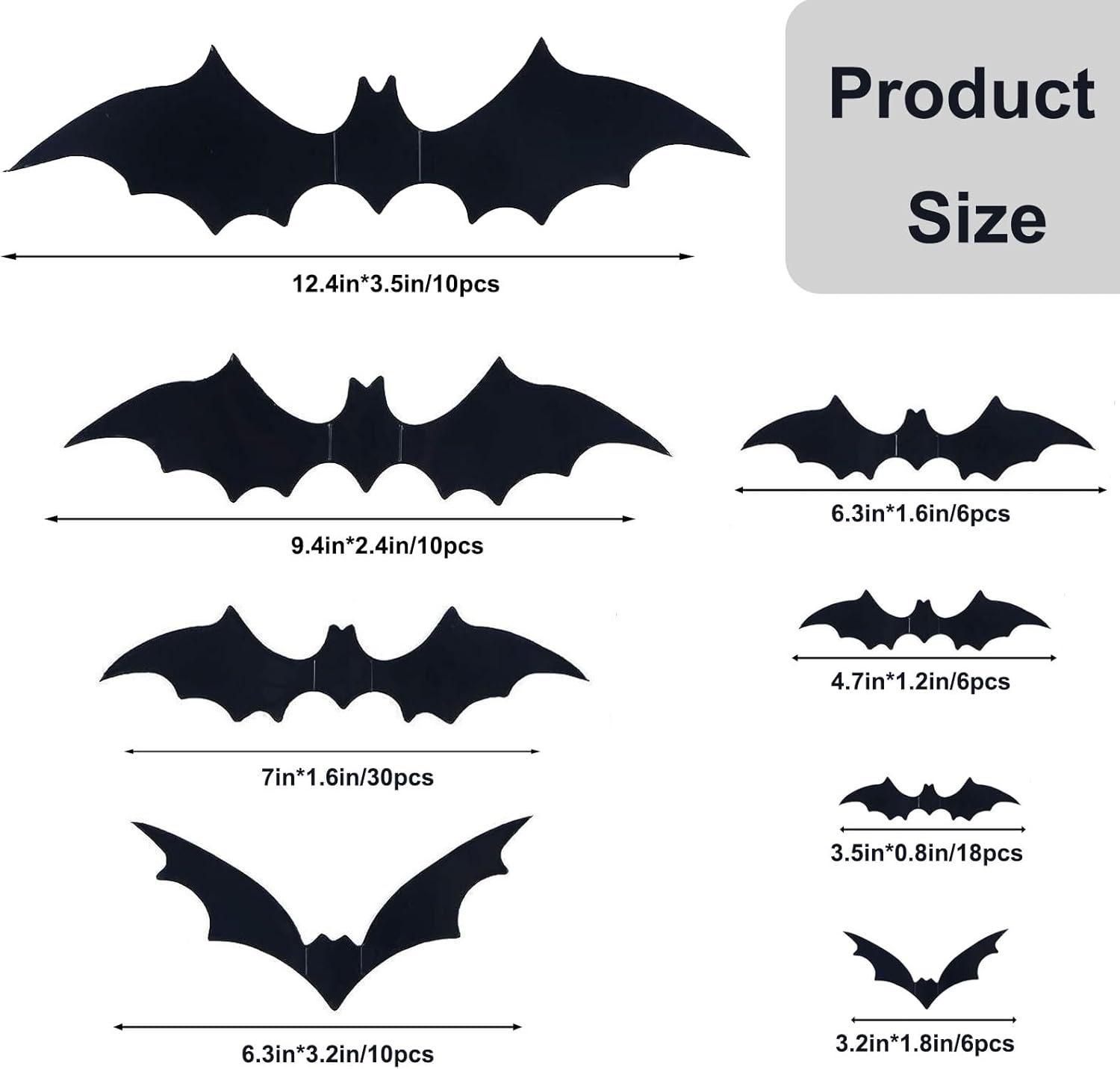 【Easy To Put Up And Reusable】 These halloween party decorations bat stickers set is made of lexible plastic. You can shape the curvature of the wings by folding over the lines on the bat stickers. These bat stickers comes with double sided tape which just have to pull it apart from the sheet and stick them anywhere you want. Durable quality.