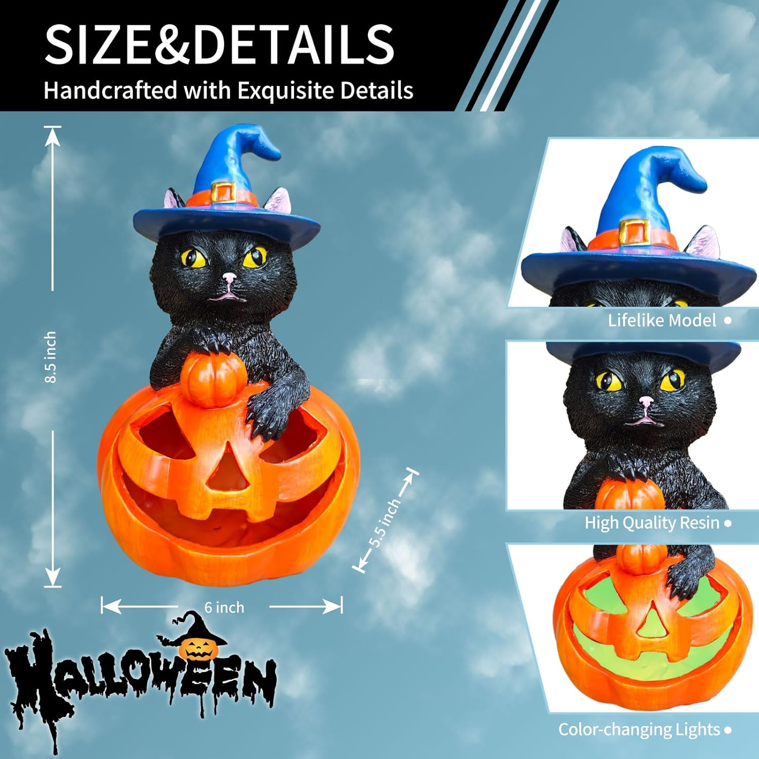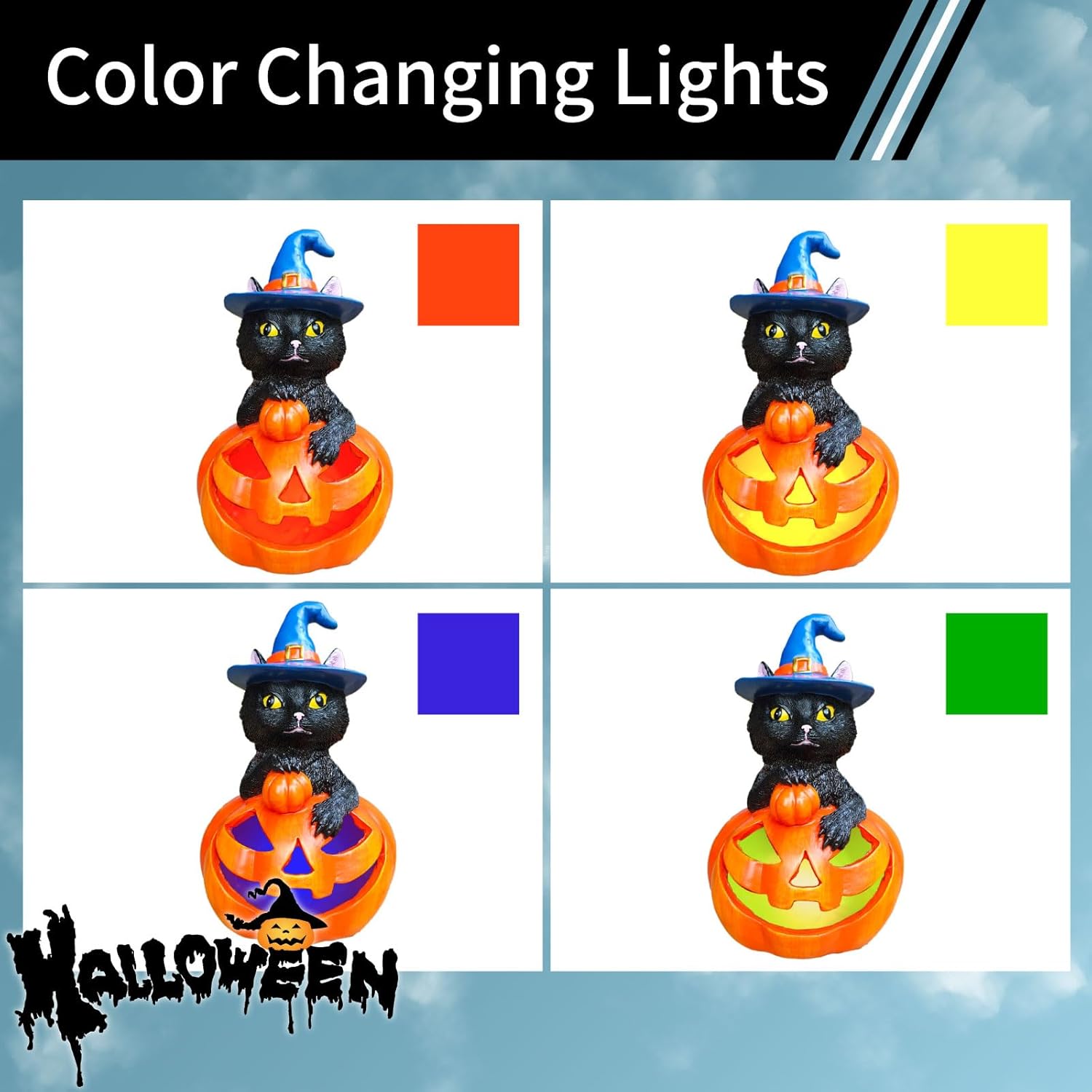 Solar Halloween Pumpkin Decoration with Black Cat Solar Garden Lights Color Changing LED Lights Halloween Yard Lawn Party Outdoor Decorations