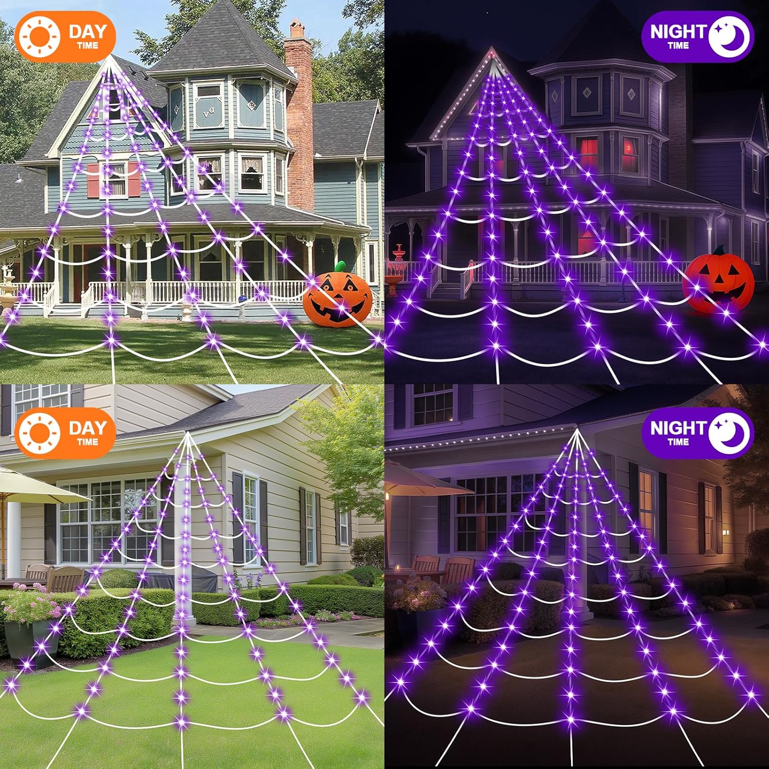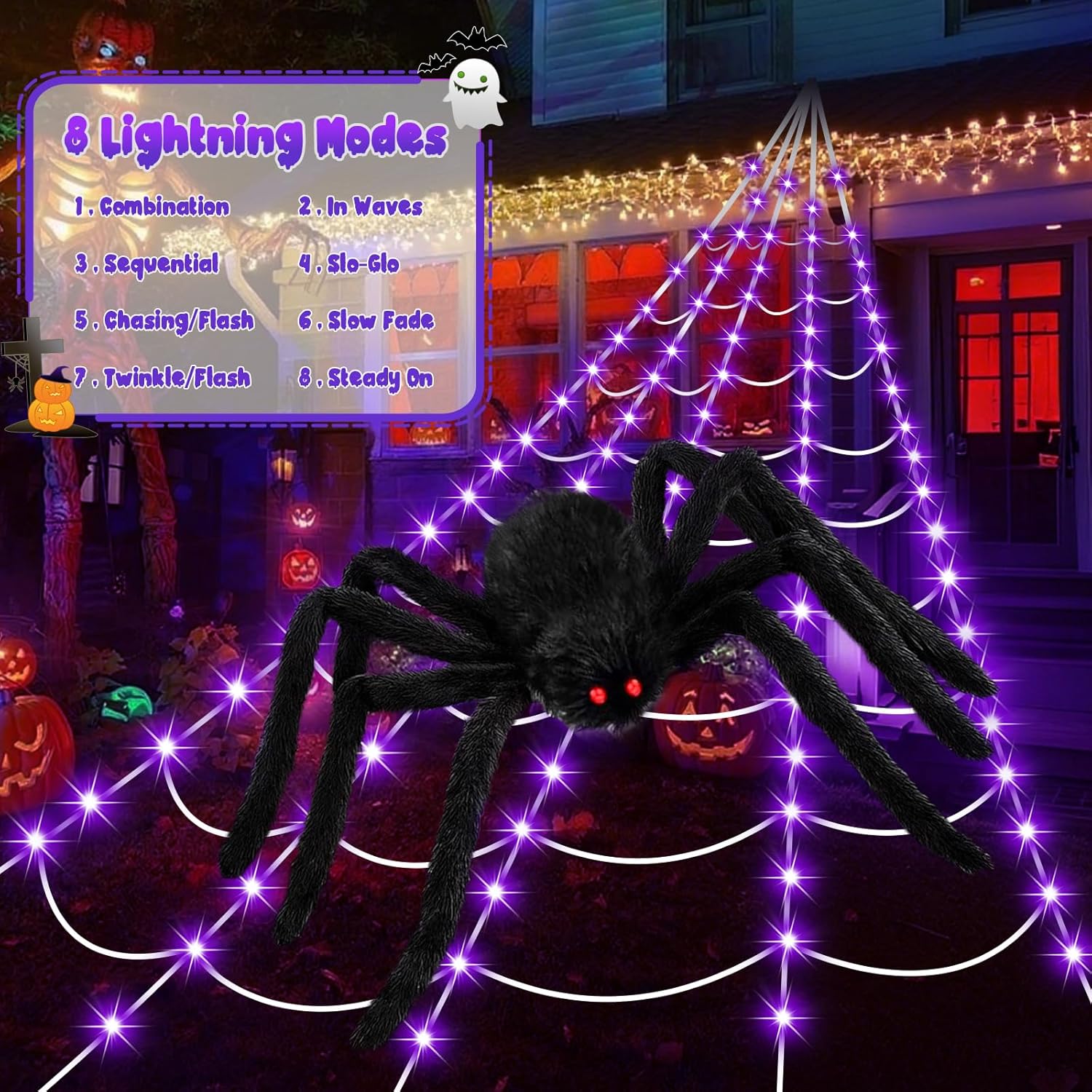 Spider Webs Halloween Decorations: Whether you want to hang it from a tree branch, hang it from the porch railing, or place it in the garden, the Halloween LED Decorative Spider Web offers limitless placement options and will be the most eye-catching of all decorations. With minimal effort, you can enjoy maximum fright—perfect for busy homeowners or last-minute decorators who want to impress their guests with minimal fuss!