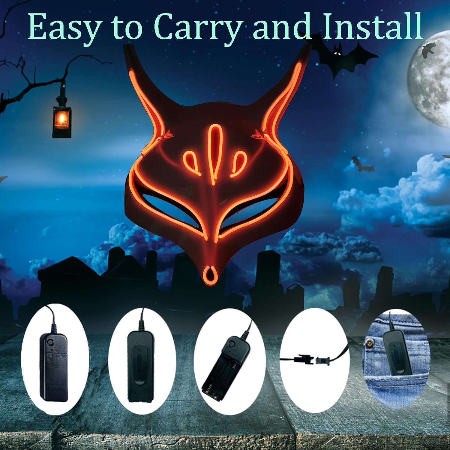 WETUFIN – Halloween Fox Purge Mask Led Light Up Mask Scary Mask Glow Mask EL Wire LED Mask for Festival Party Gifts Couple Mask, Purge Mask for Kids Man Woman Adult, Red