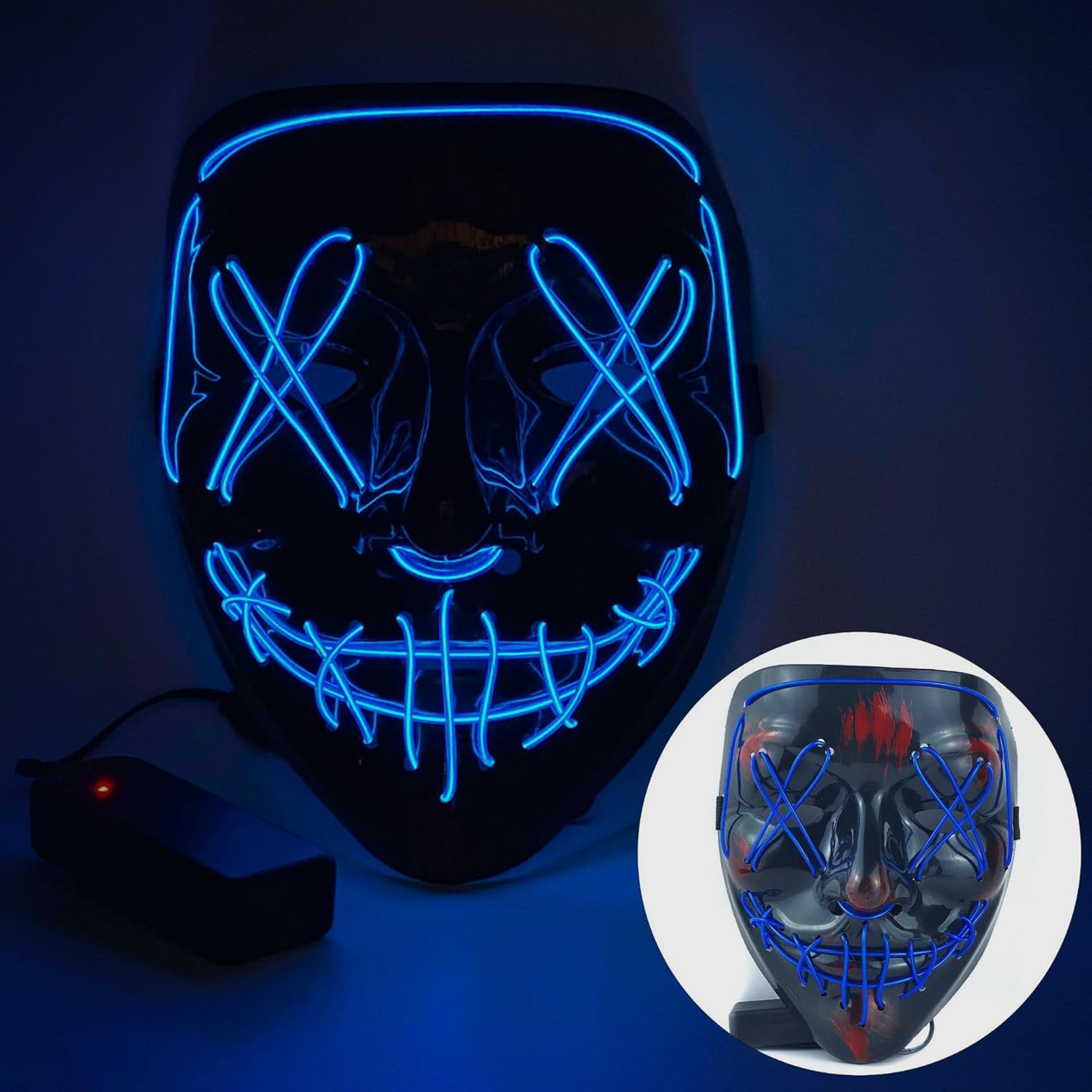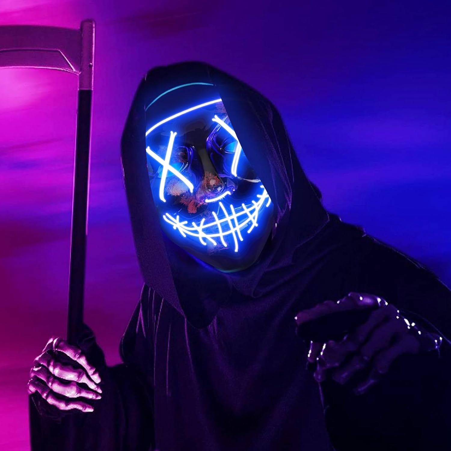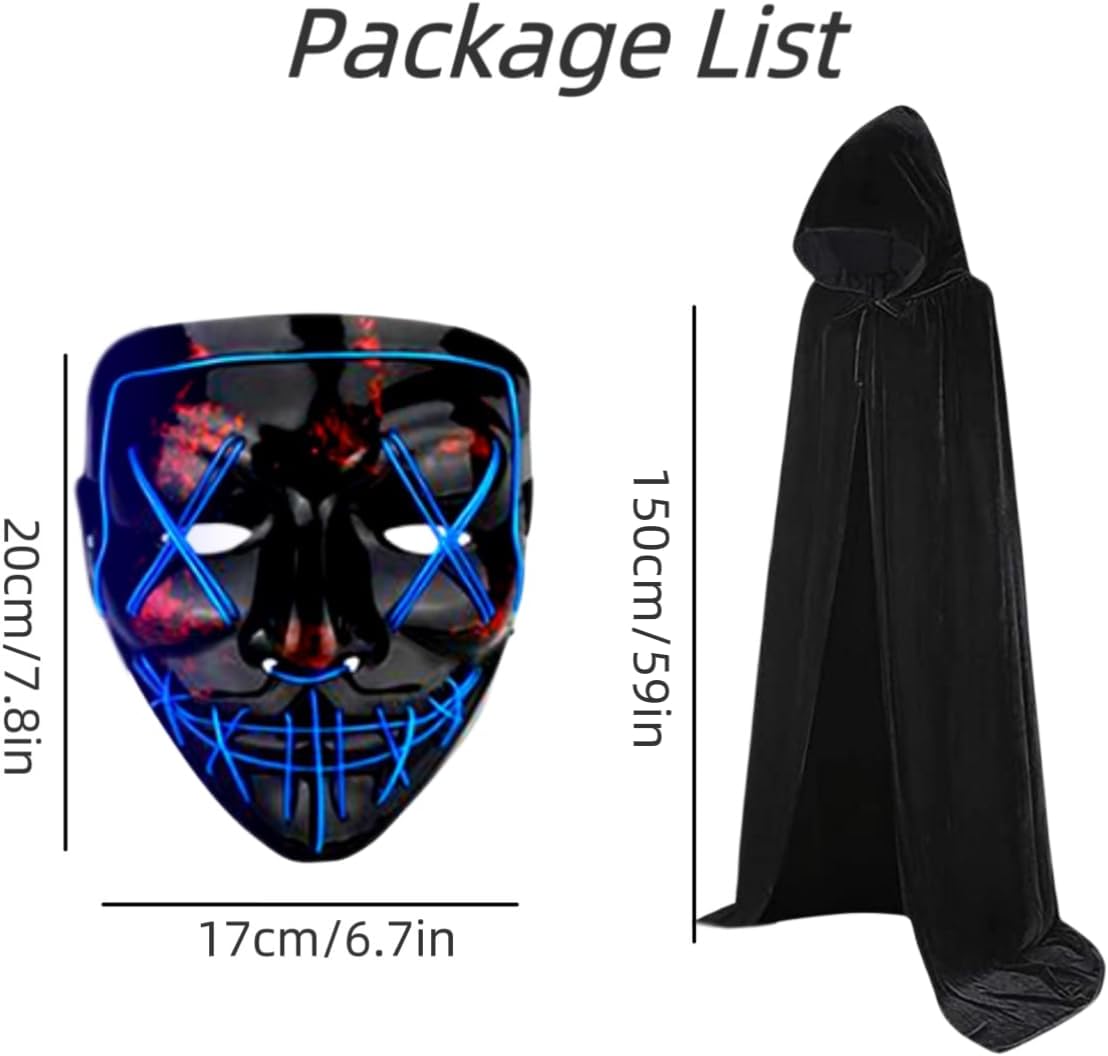 Halloween Mask Hooded Cloak Set, LED Light Up Mask Scary for Festival Cosplay Halloween Costume Party Supplies,Gift