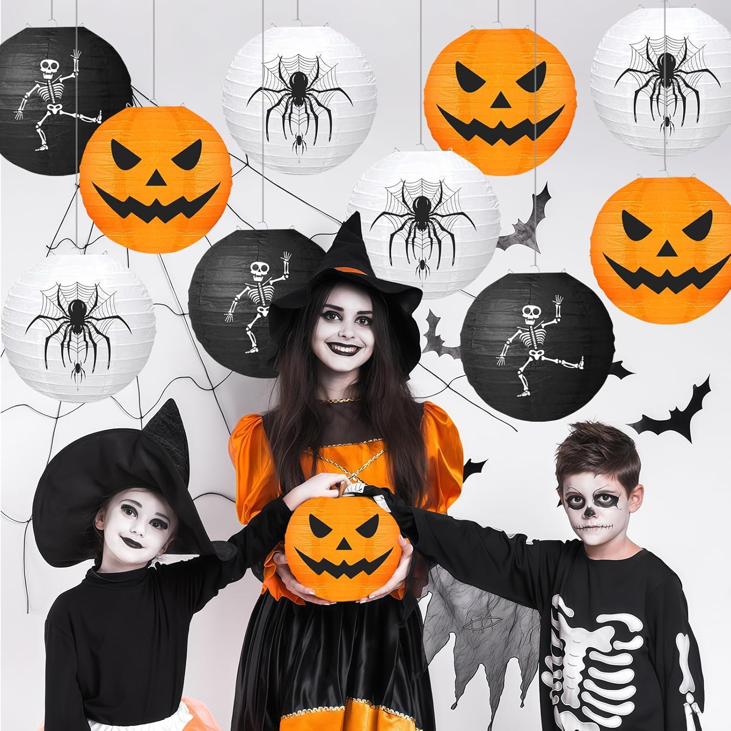 【Eye-catching Halloween Decorations】 Each lantern features unique patterns such as spiders, skulls, and pumpkins, adding a spooky yet vibrant touch to your Halloween party, Trick-or-Treat night, or winter-themed events. These paper lanterns will make your space more magical and memorable for all who visit