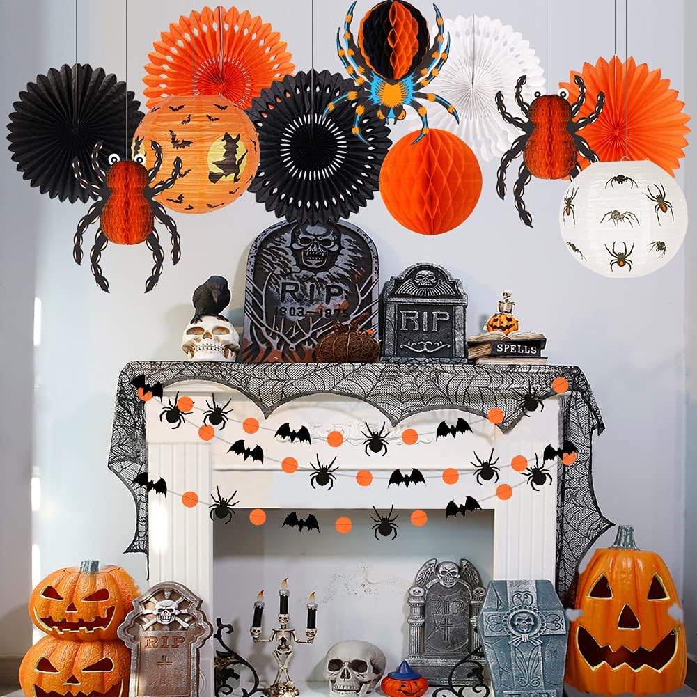 Festive Atmosphere Creator: This cheap Halloween decorations set is perfect for creating a spooky – yet – fun atmosphere. Filled with iconic Halloween elements like spiders, bats, Halloween lantern and spiders honeycomb decorations, paper fans, it instantly transforms any space into a haunted haven
