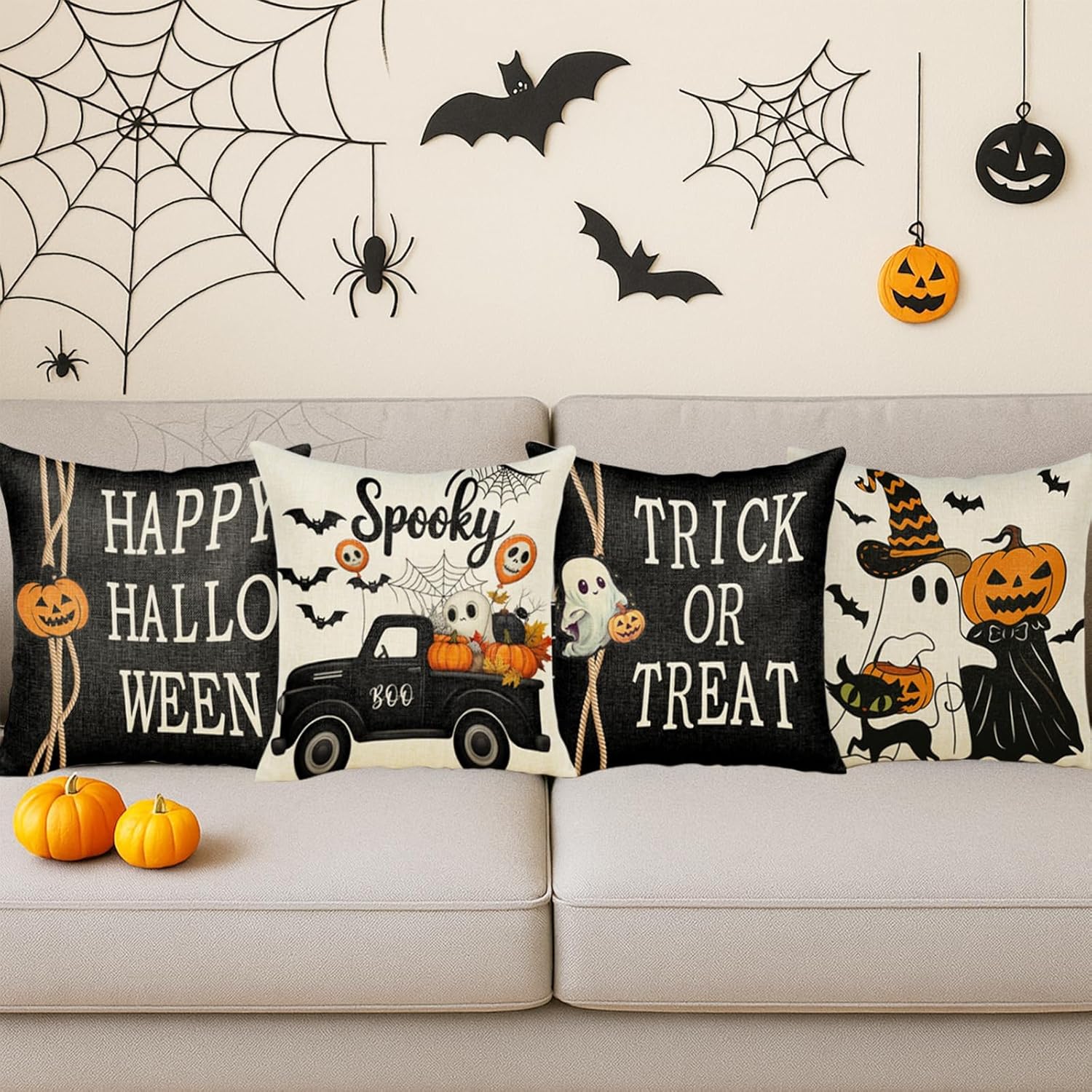 Soft Linen Pillow Covers:These trick or treat pillow covers made of breathable linen material,feel nice,skin-friendly, breathable & comfortable. It can be used continuously after washing.No bleeding, fading or fraying issue,The patterns are clear and bright.