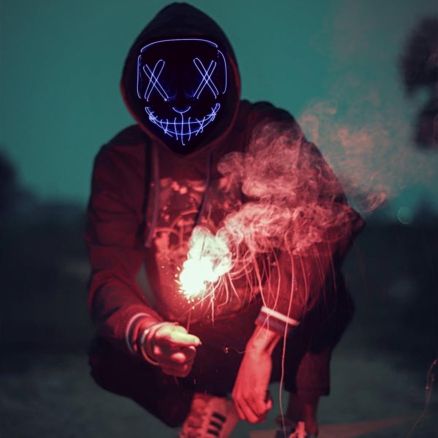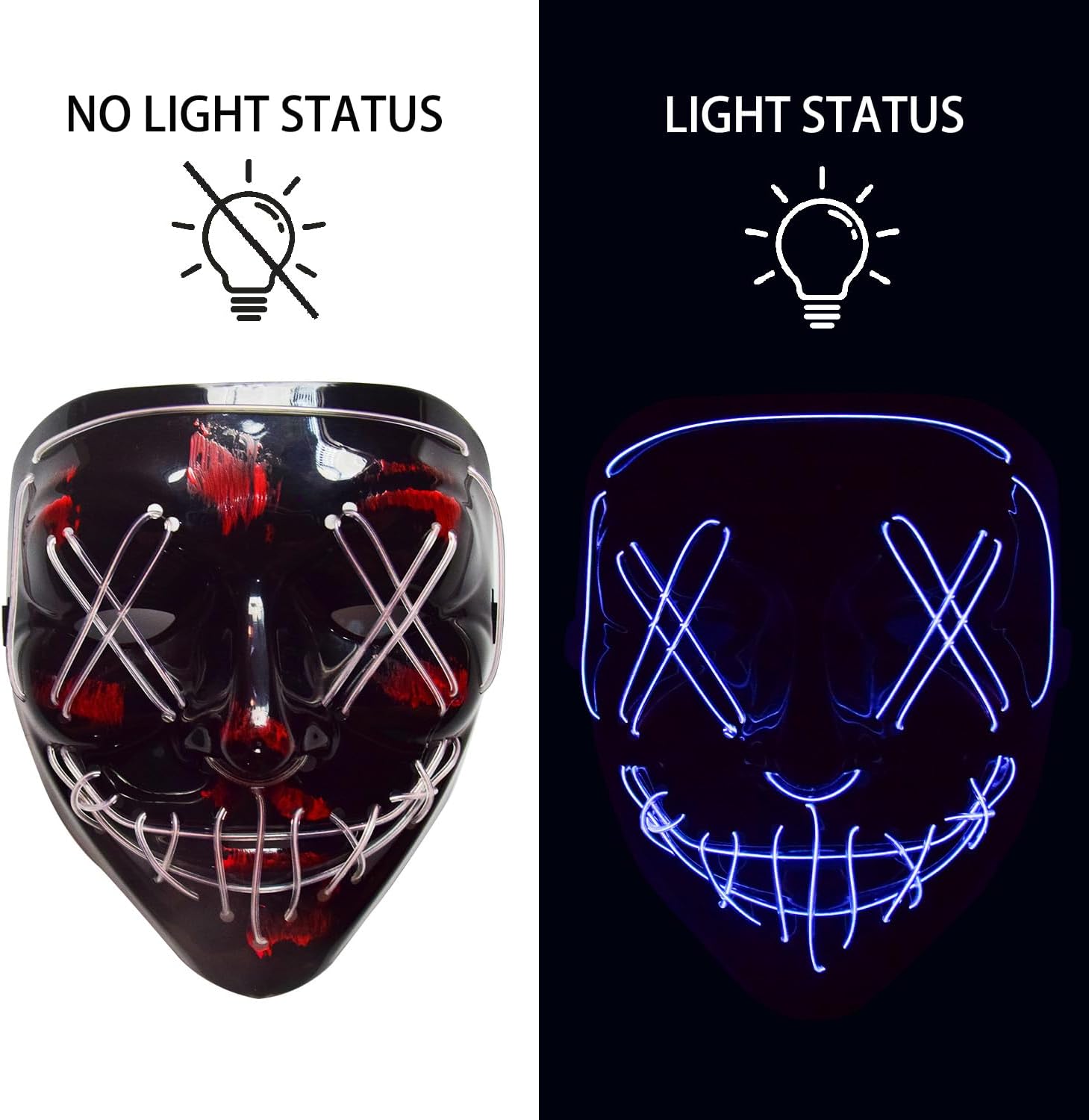 Halloween Scream Mask Sary Masque LED Light Up Masks Purge Ghost Face Cosplay Party Costume for Men Women Boys Kids Adult Festival