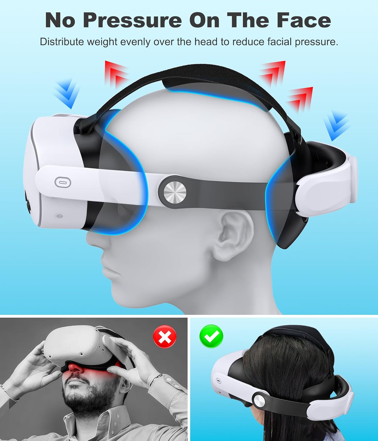 Universally Compatible with Meta Quest 3S/3/2 – Our NinjajoyOX head strap is designed for Meta Quest 3S, Quest 3, and Oculus Quest 2 headsets. The package contains two sets of attachment brackets, allowing you to install the corresponding brackets based on your VR headset model. The ergonomically designed head strap effectively reduces pressure on your face and head during extended gaming sessions, allowing you to fully immerse yourself in fantastic virtual worlds