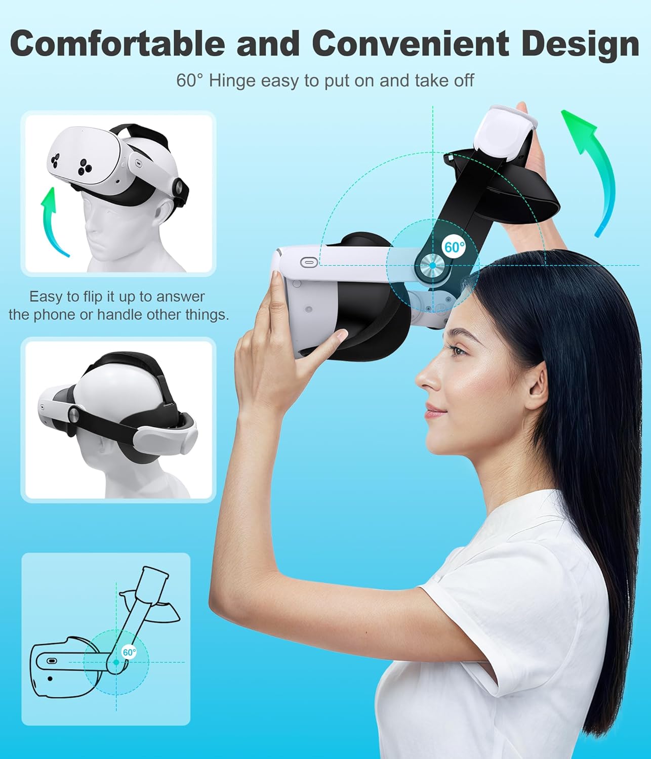 Real-World Convenience with Quick-Release Design – The adjustable headset strap allows you to tilt the device upward by 60 degrees without taking it off. This feature enables quick access to your surroundings for tasks like taking a drink, answering calls, or opening doors – all without interrupting your VR experience. Additionally, the package includes a specialized dust cloth, ensuring your VR headset and lenses stay clean and free of dust buildup
