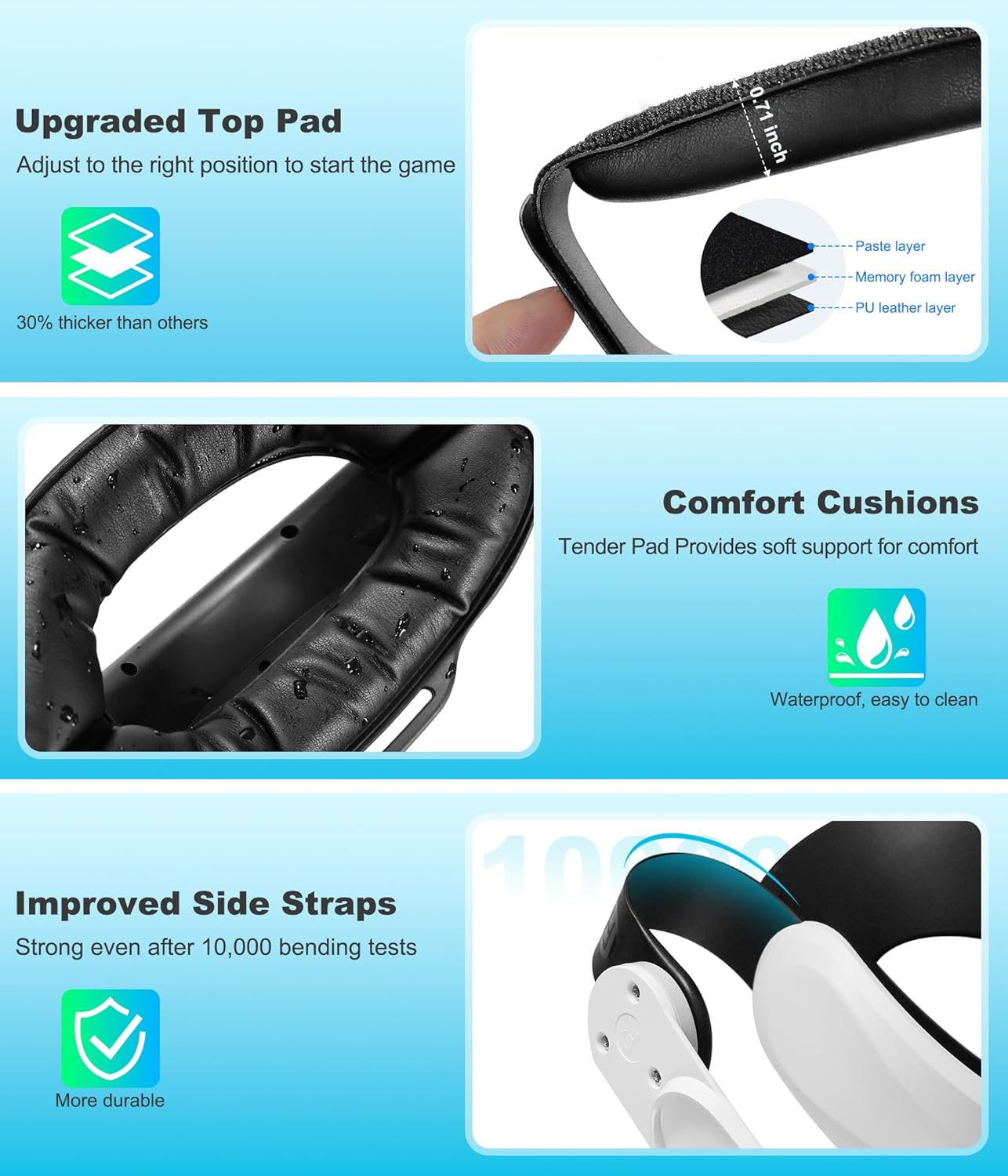 Comfortable Padding for Long-Term Wear – The Elite Strap for Quest 3S features ergonomically engineered top and back padding, crafted from soft, skin-friendly fabric. Its precision-engineered design delivers unmatched stability through a wide contact surface that gently adapts to your head contours, ensuring maximum comfort and reliability. Experience extended gameplay with up to 40% reduced pressure and enhanced comfort, ideal for VR fitness and immersive entertainment
