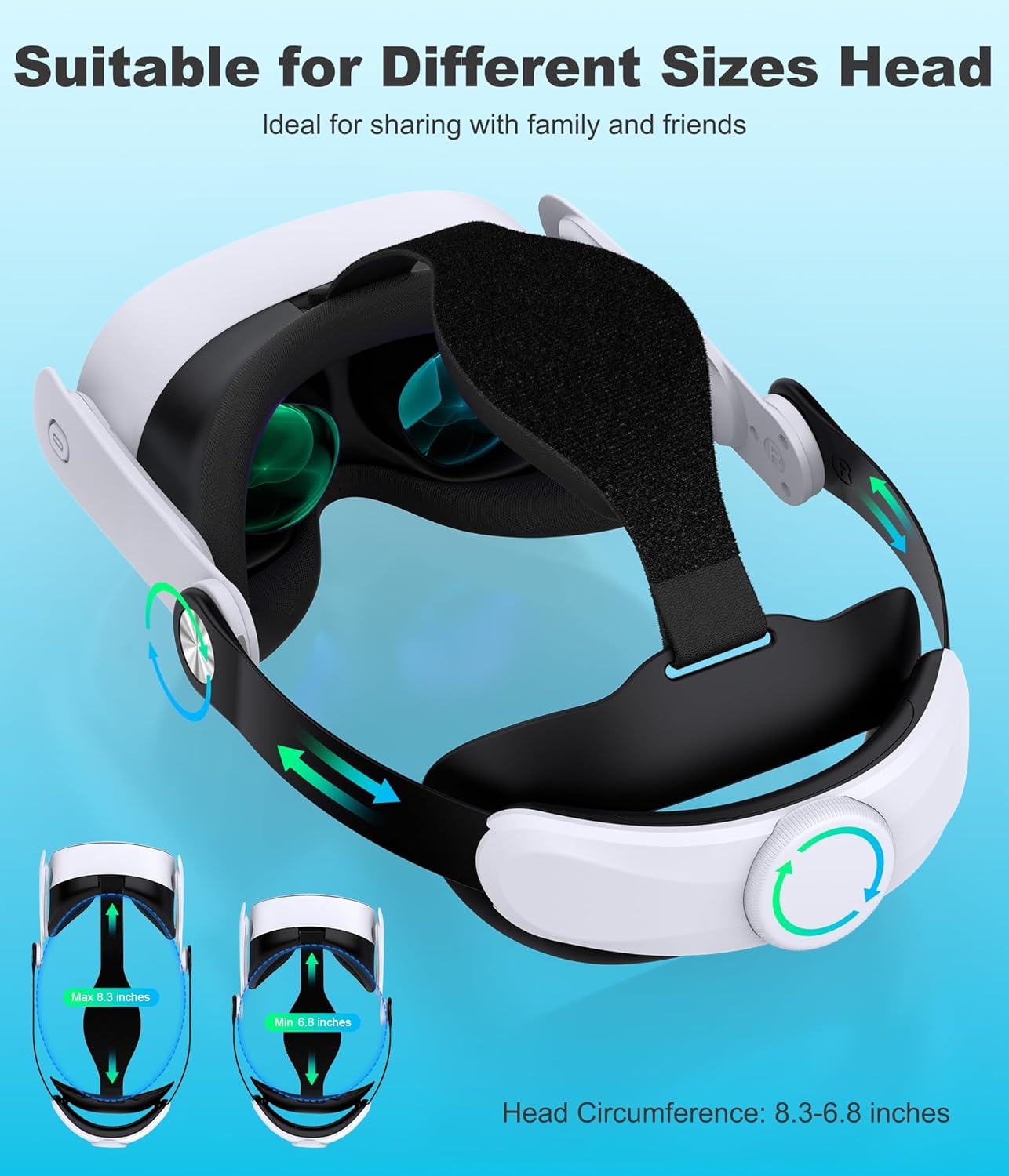 Adjust The Elite Strap Replacement To Your Comfort Level -Based on ergonomic principles, our strap features a rotating dial, you can adjust the knobs according to the shape of your head. Minimum/maximum head length compatibility of 5.9 inch-9inch It is compatible for both adults and kids, come and share the fun with your family!