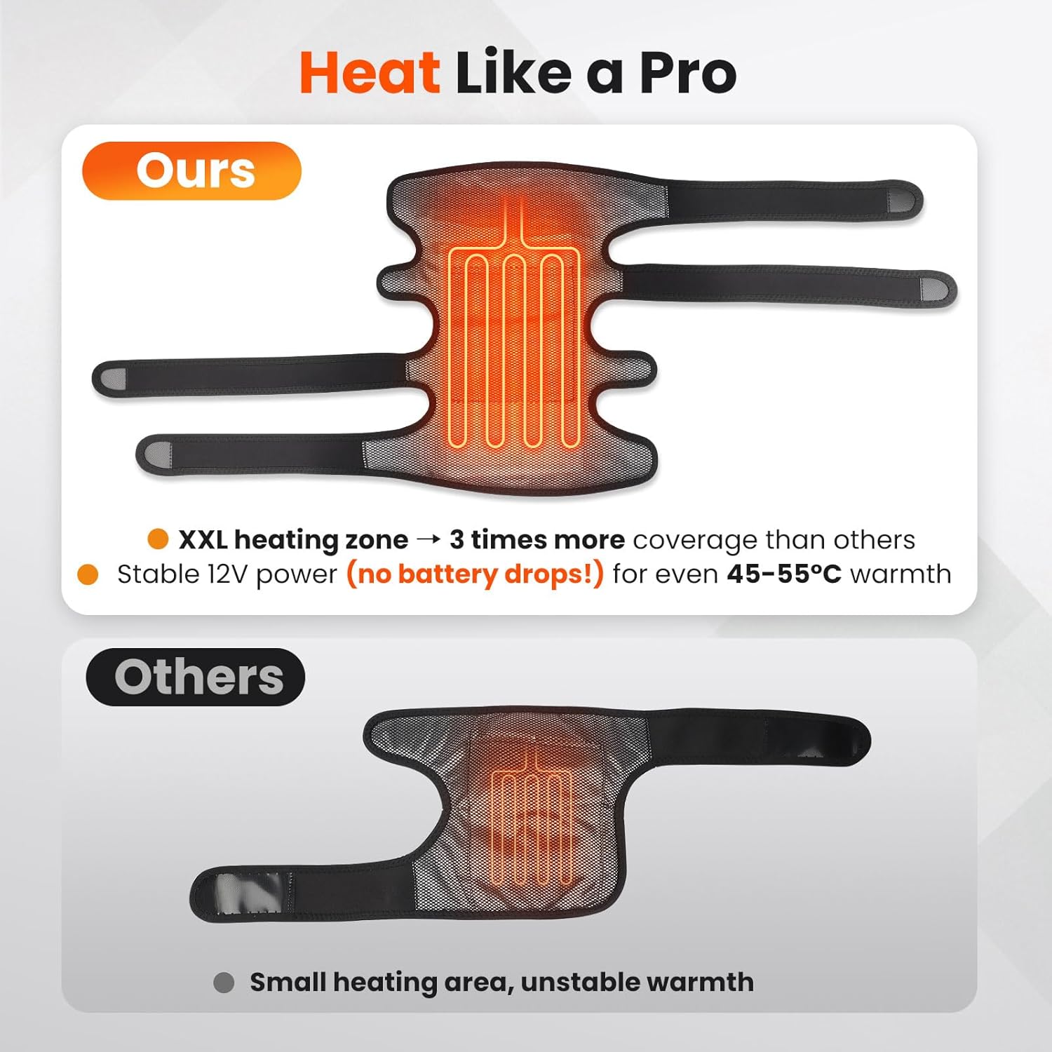 FULL-COVERAGE THERMAL COMFORT:3X expanded heating zone with triple adjustable temperatures (45℃–55℃) maintains steady warmth across the entire knee area via stable direct-current technology