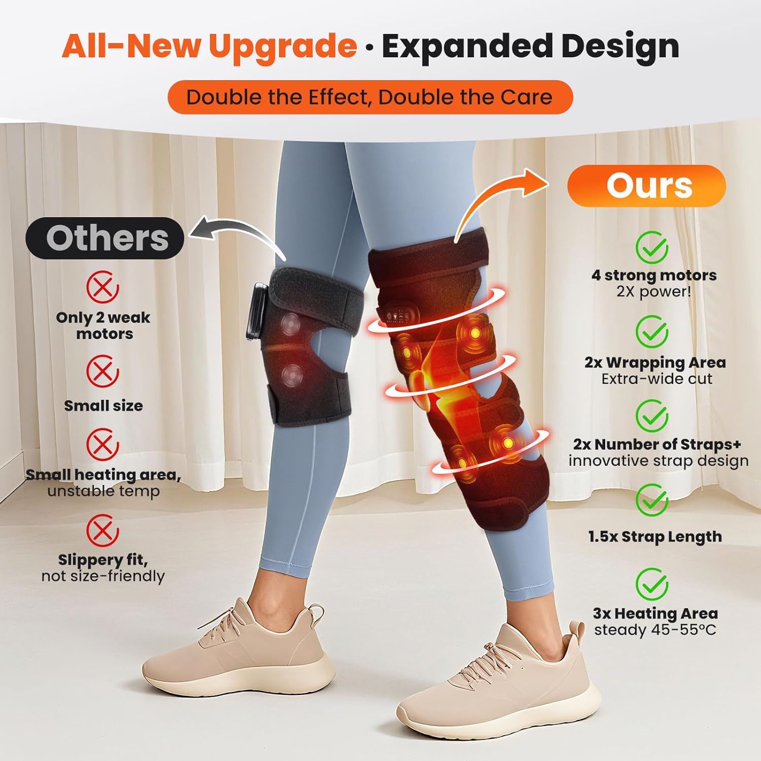 Heated Knee Massager with 4 Motors, 3-level Heating, 5 Massage Modes Heating Pad for knee, Supply Heated Knee Brace for Men and Women