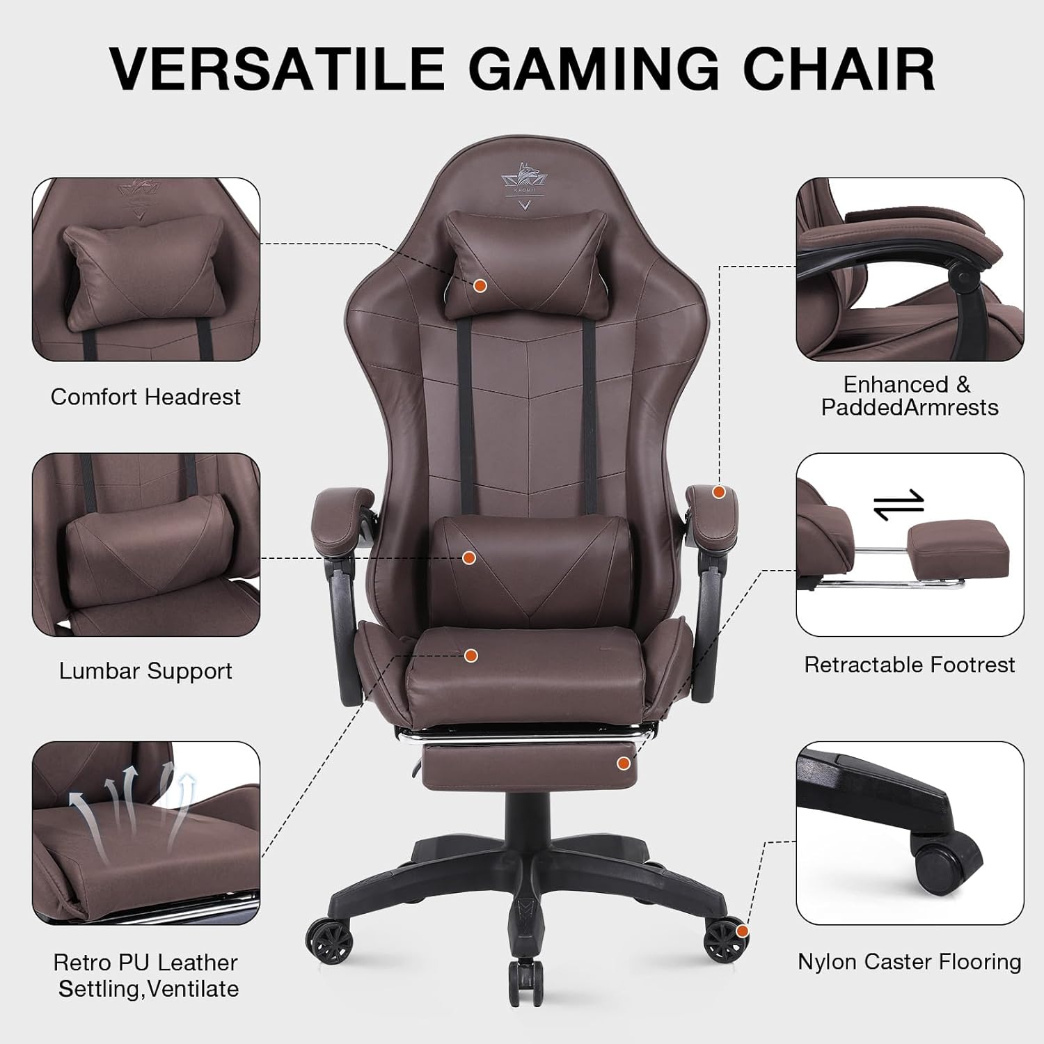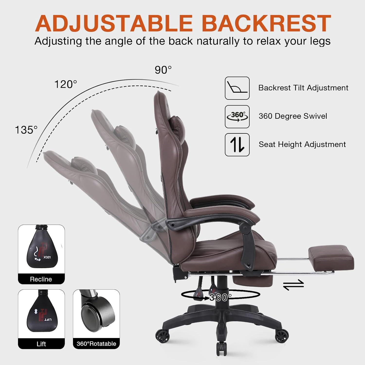High-Back PC Gaming Chair Office Chair, Desk Task Chair Computer Racing Chair, PU Ergonomic Executive Swivel Rolling Chair with Lumbar Support for Women, Men (Brown)