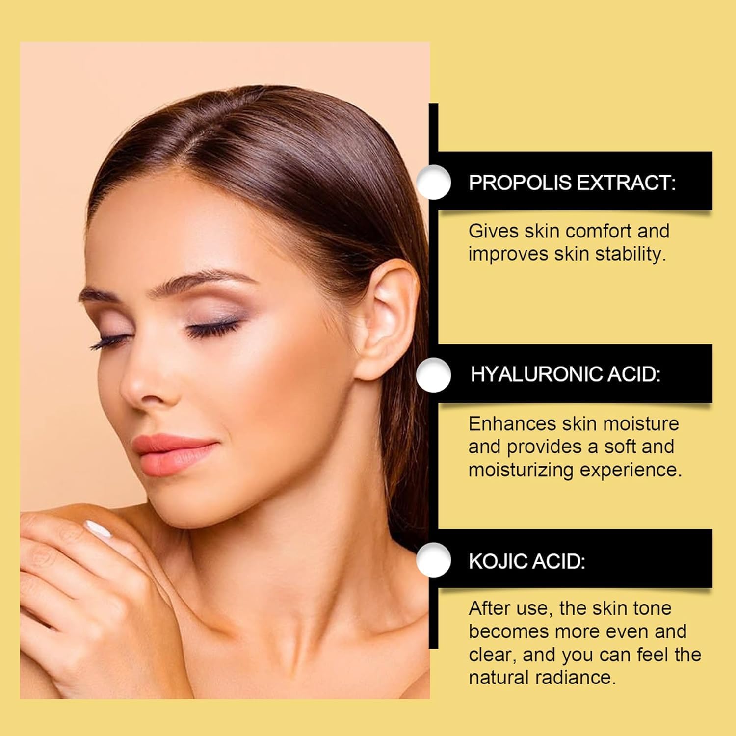Propolis & Niacinamide Serum for Glowing Skin: This Honey Glow Propolis Serum is infused with Niacinamide and Propolis to deeply nourish and brighten your skin. The antioxidant-rich formula helps reduce dullness, evens skin tone