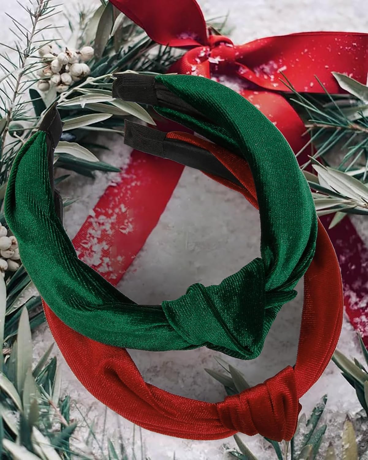 【Christmas Headbands】Soft velvet headbands for women come with red and green color, super adorable and full of festival celebration vibes, great hair accessories for Christmas party, New Year, Valentine’s Day, or daily outfits.