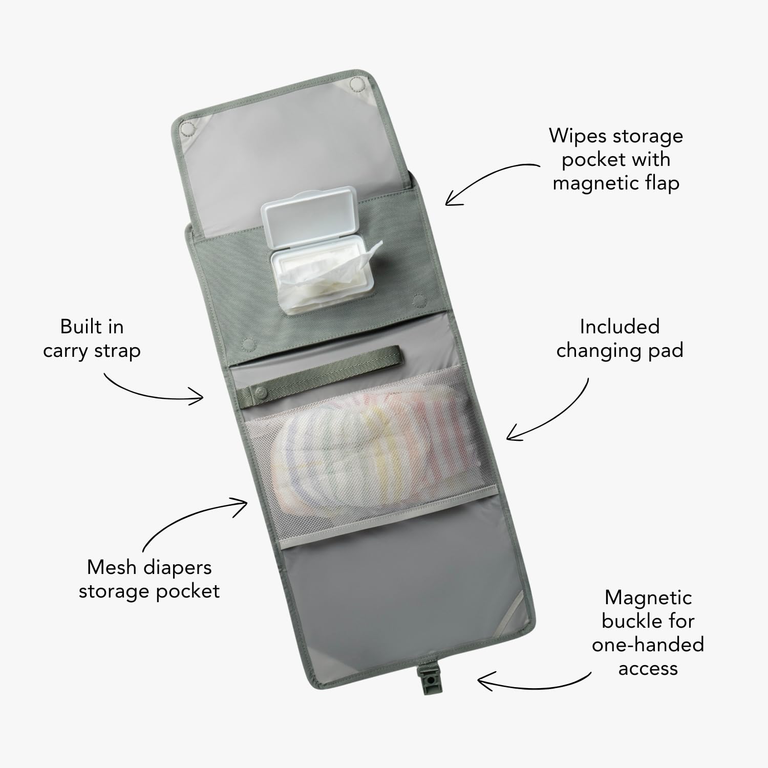 Huhu Baby Changing Wallet – Compact, Portable Diaper Changing Pad for Travel – Easy to Clean, Foldable Changing Mat – Must Have Diaper Bag Accessory for New Parents (Outdoorsy Sage)