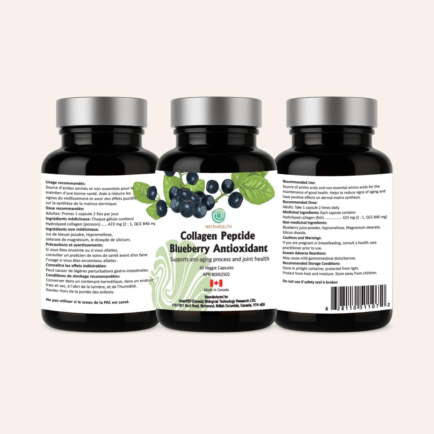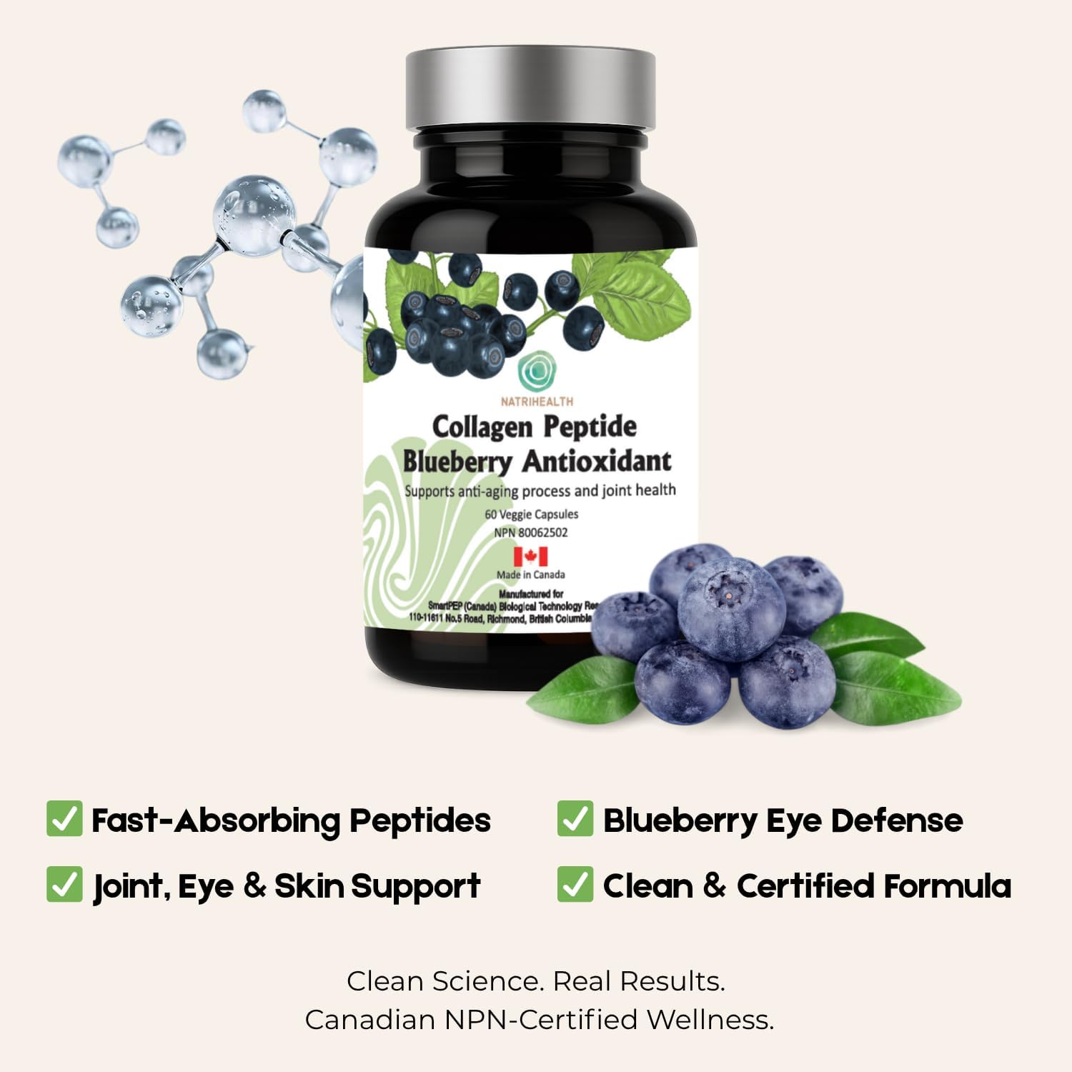 Support your wellness from the inside out with Natrihealth’s Hydrolyzed Marine Collagen Peptide Supplement — now enhanced with antioxidant-rich blueberry extract. Each vegan capsule contains ultra-small molecule collagen peptides (<2000 Daltons) for superior absorption and effectiveness.