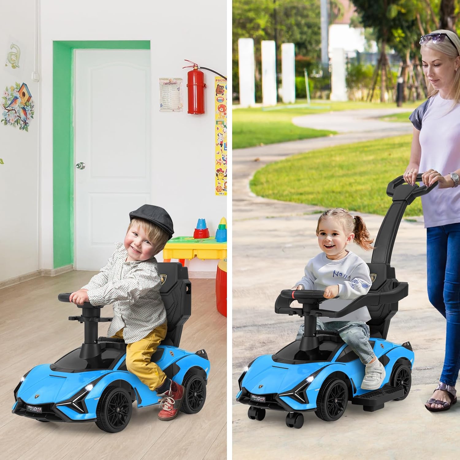 Licensed Lamborghini Push Car: INFANS baby push car come with rear Licensed Lamborghini look.The child stroller is the perfect combination of style and functionality. This licensed car is the perfect gift for a child.