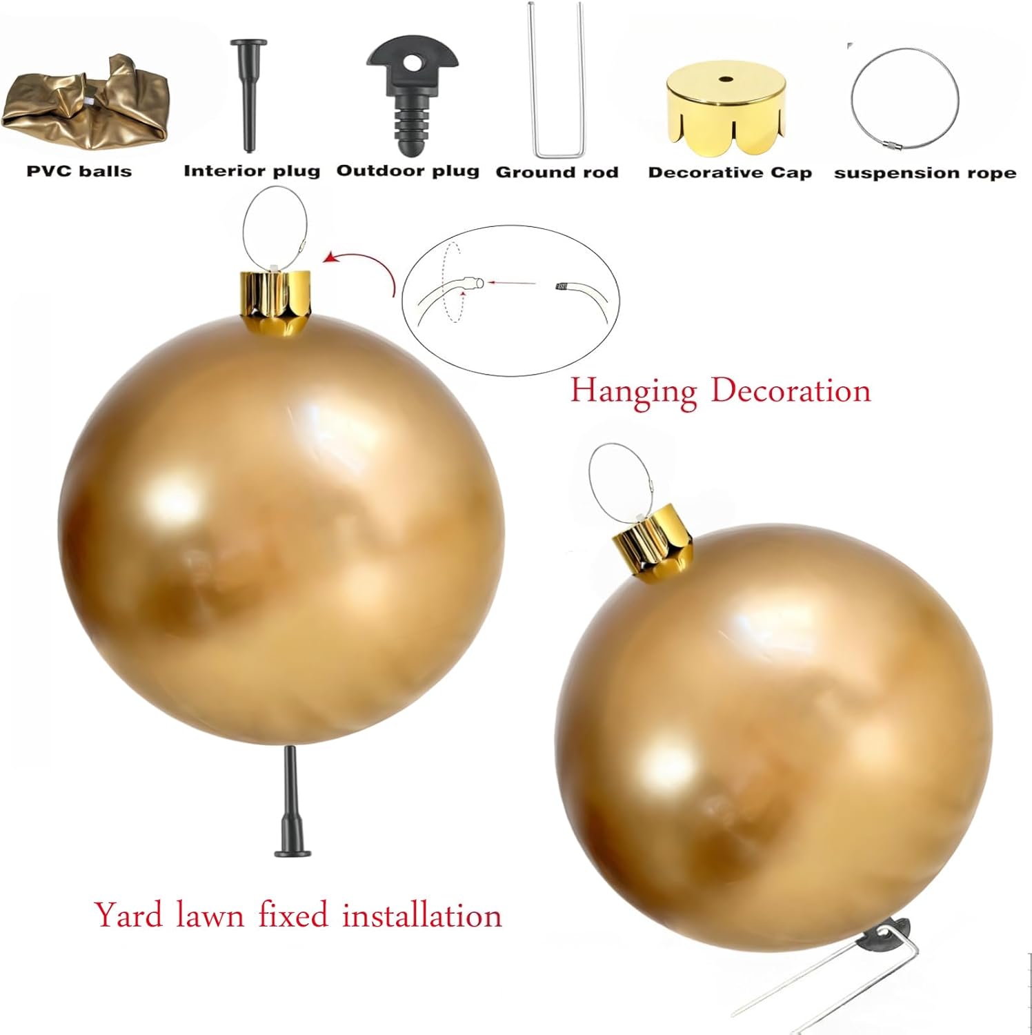 – Stunning Visual Impact: Available in classic Christmas hues like glossy red, shimmering gold, crisp white, and rich green, these giant ornaments instantly become the focal point of your decor. Hang them from your porch, tree, or patio to create a whimsical, Instagram-worthy holiday scene.