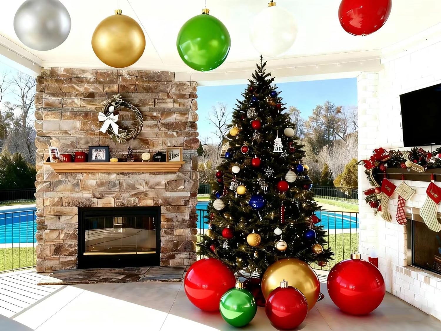 ✅【Multi-Scene Use】18/25 Inch Jumbo Size, Eye-catching sphere design with vibrant red/green/white/gold/green colors, stunning displays on your porch, lawn, driveway, deck, or pool, visible from street for holiday cheer