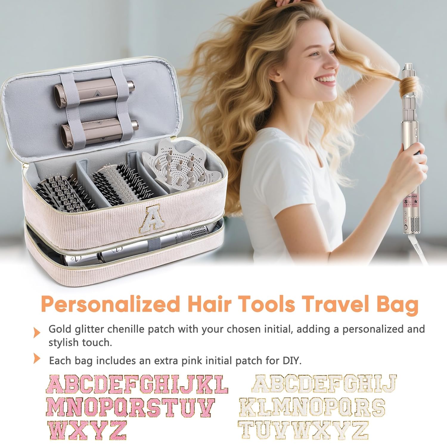 Designed with two layers of different heights—a taller top layer and a shorter bottom layer—this bag provides smart vertical space management to fit a variety of hair tools and accessories.