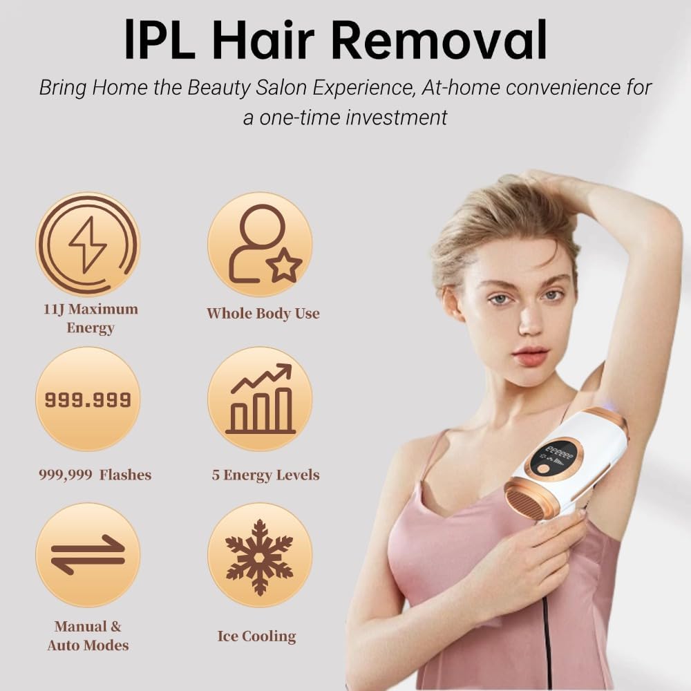 IPL HAIR REMOVAL DEVICE, Laser Hair Removal for Women and Men, Home Use Hair Removal Ice-cooling Laser Epilator, 999999 Flashes for Whole Body Use