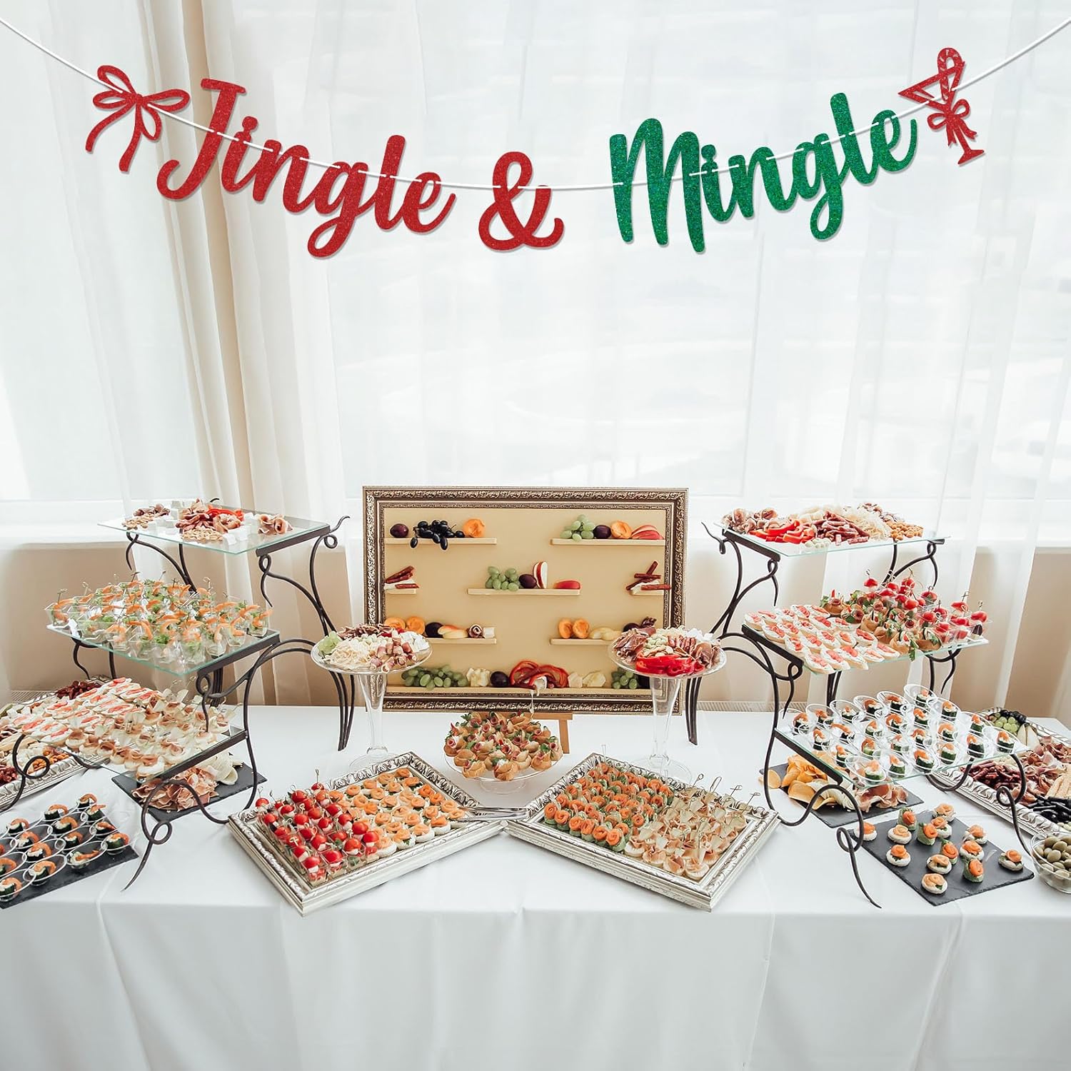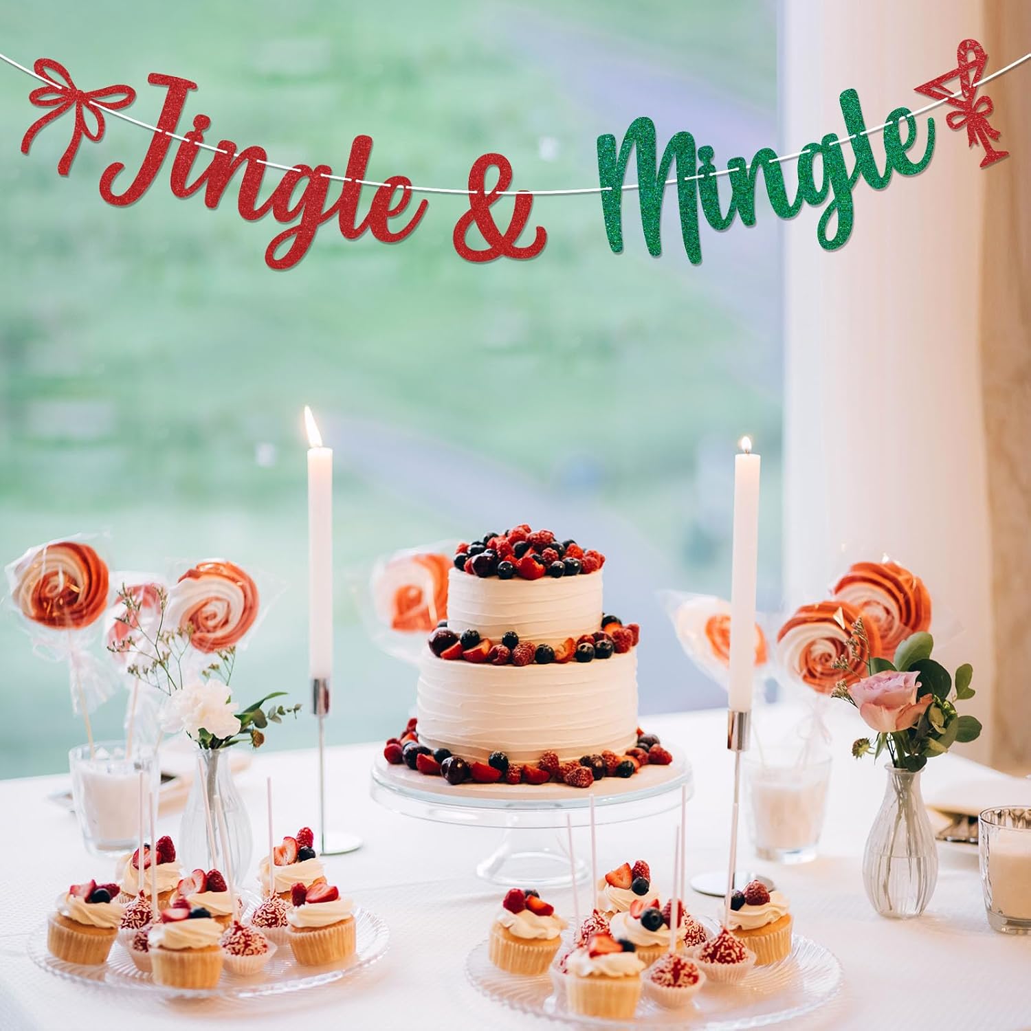 Jingle & Mingle Banner – Red Coquette Martini Theme Friendsmax Party Decor, Christmas Winter Holiday Party Decorations Red & Green Glitter