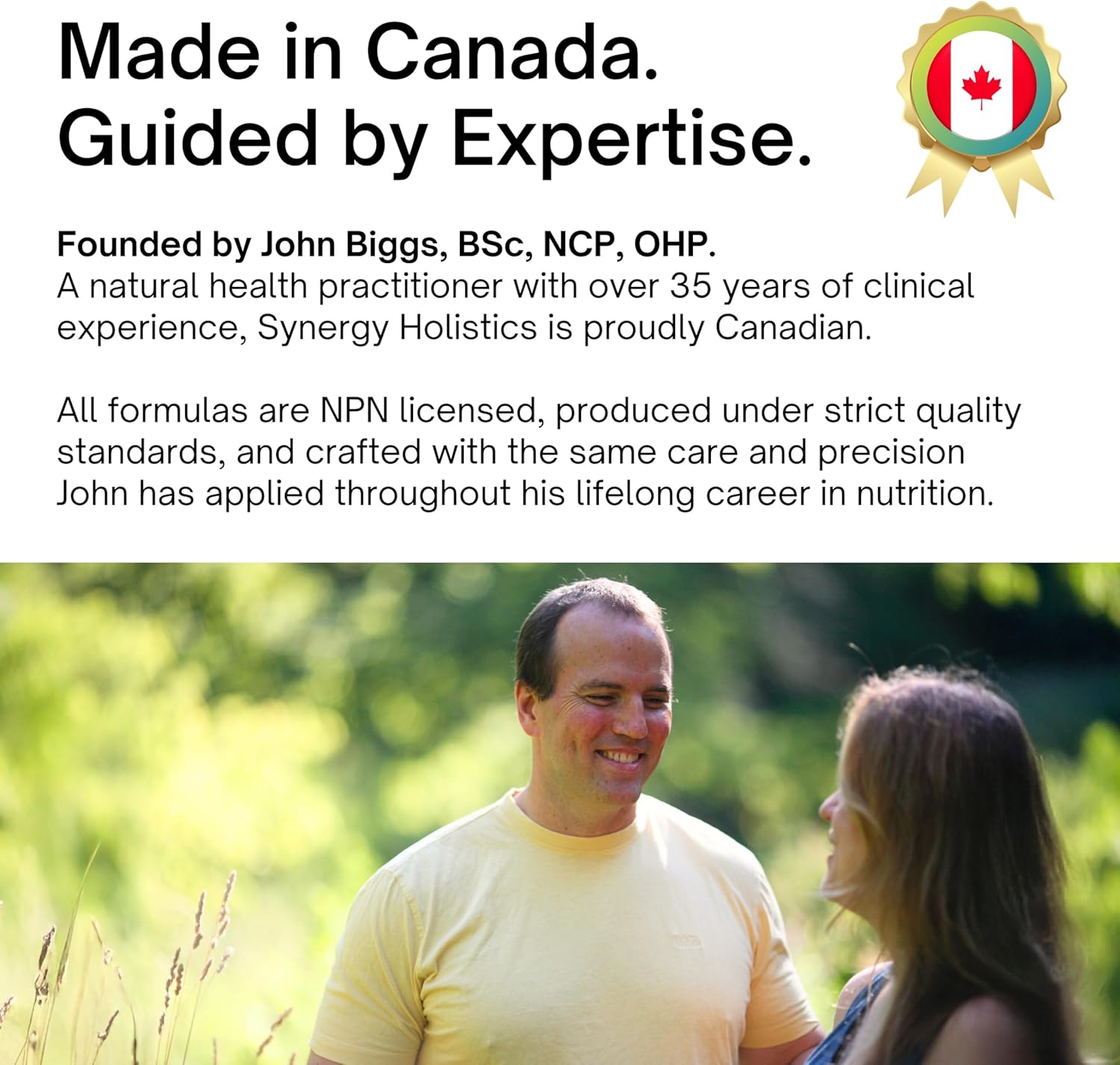 PRACTITIONER-FORMULATED – Created by John Biggs, BSc., Founder of Synergy Holistics and a natural health practitioner with 35+ years of experience creating science-backed supplements trusted by thousands of Canadians.