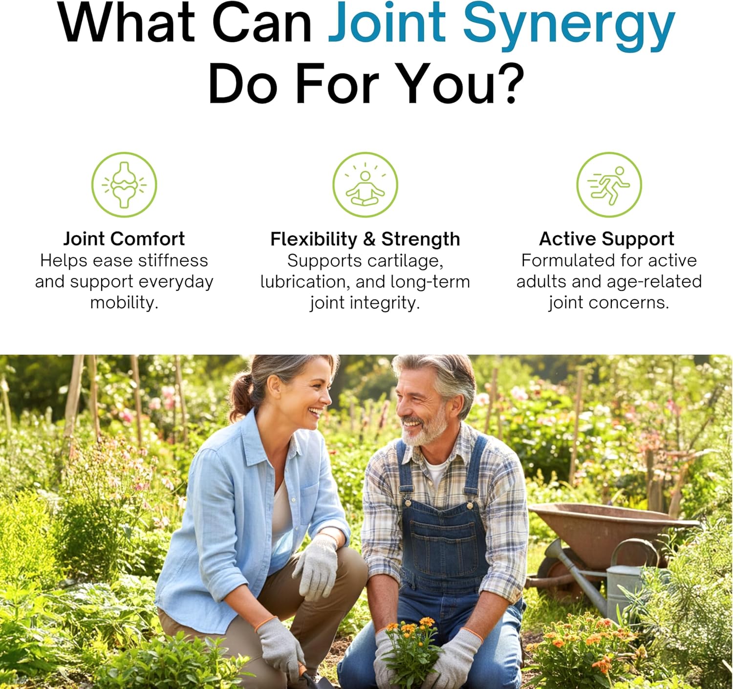 MOST JOINT SUPPLEMENTS FALL SHORT – Basic glucosamine or collagen formulas only cover part of joint health. Joint Synergy combines 7 clinically studied ingredients for powerful multi-action support and long-term joint health.