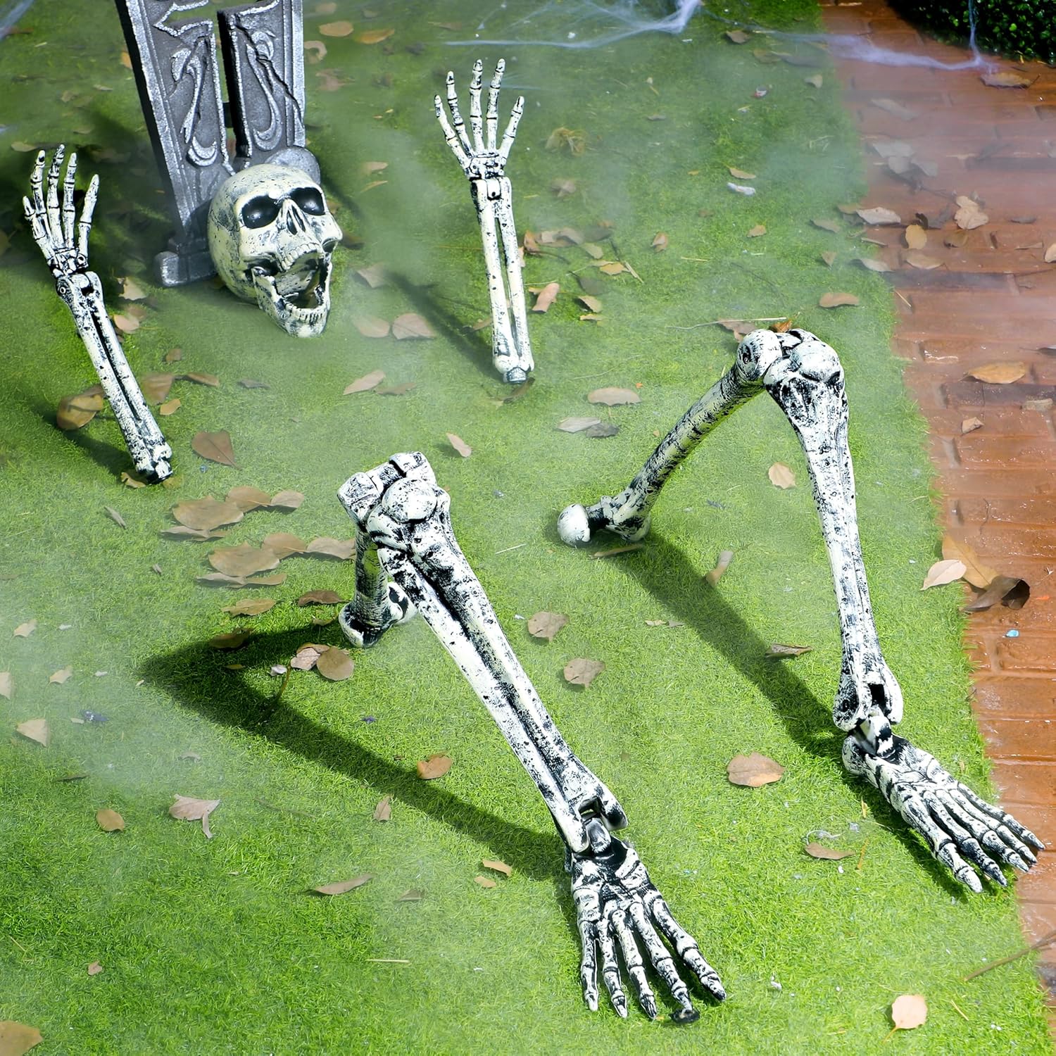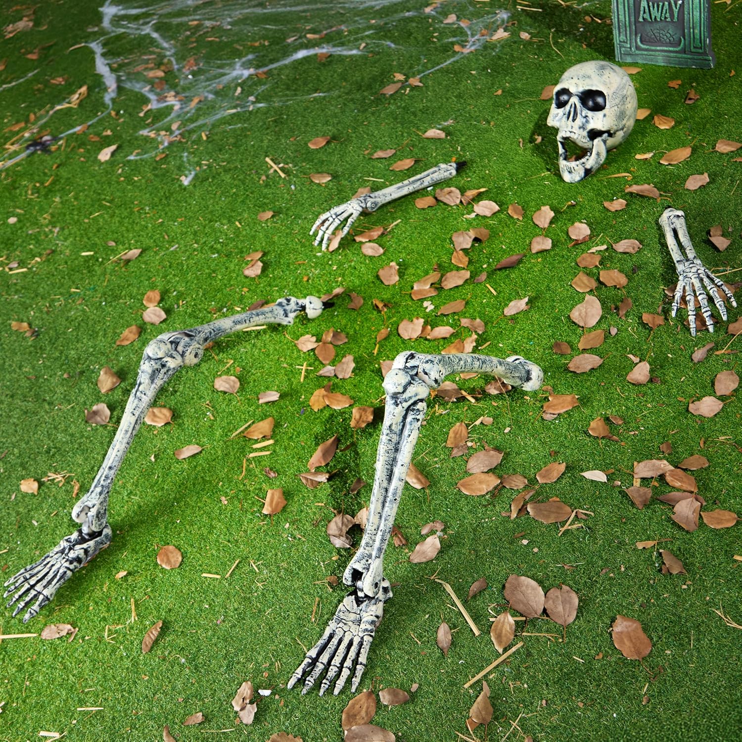 Comprehensive Set: Crafted with spine-tingling detail, total 5 pcs, the set features a plastic skeleton head, a pair of skeletal arms and legs, perfect for simulating a buried groundbreaker skeleton clawing its way to the surface, helping you create a perfect Halloween ghost theme.