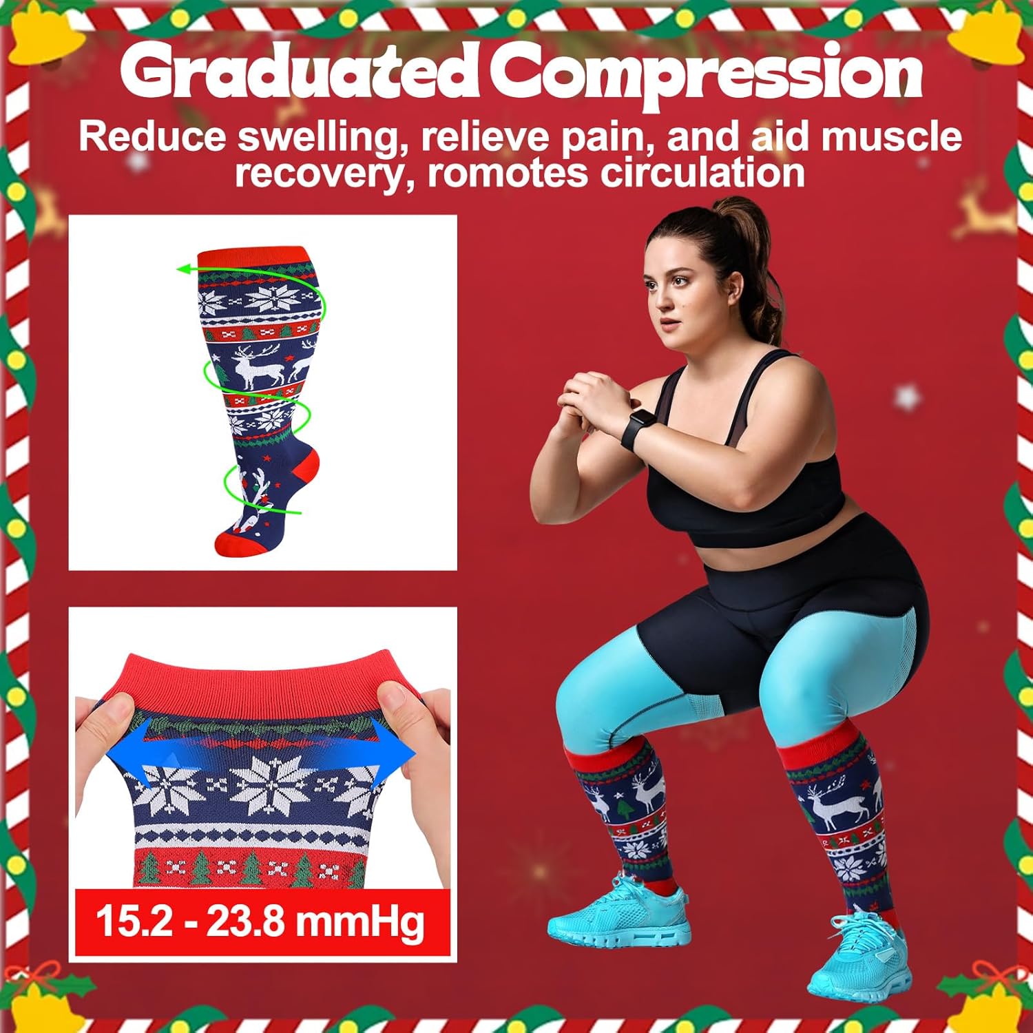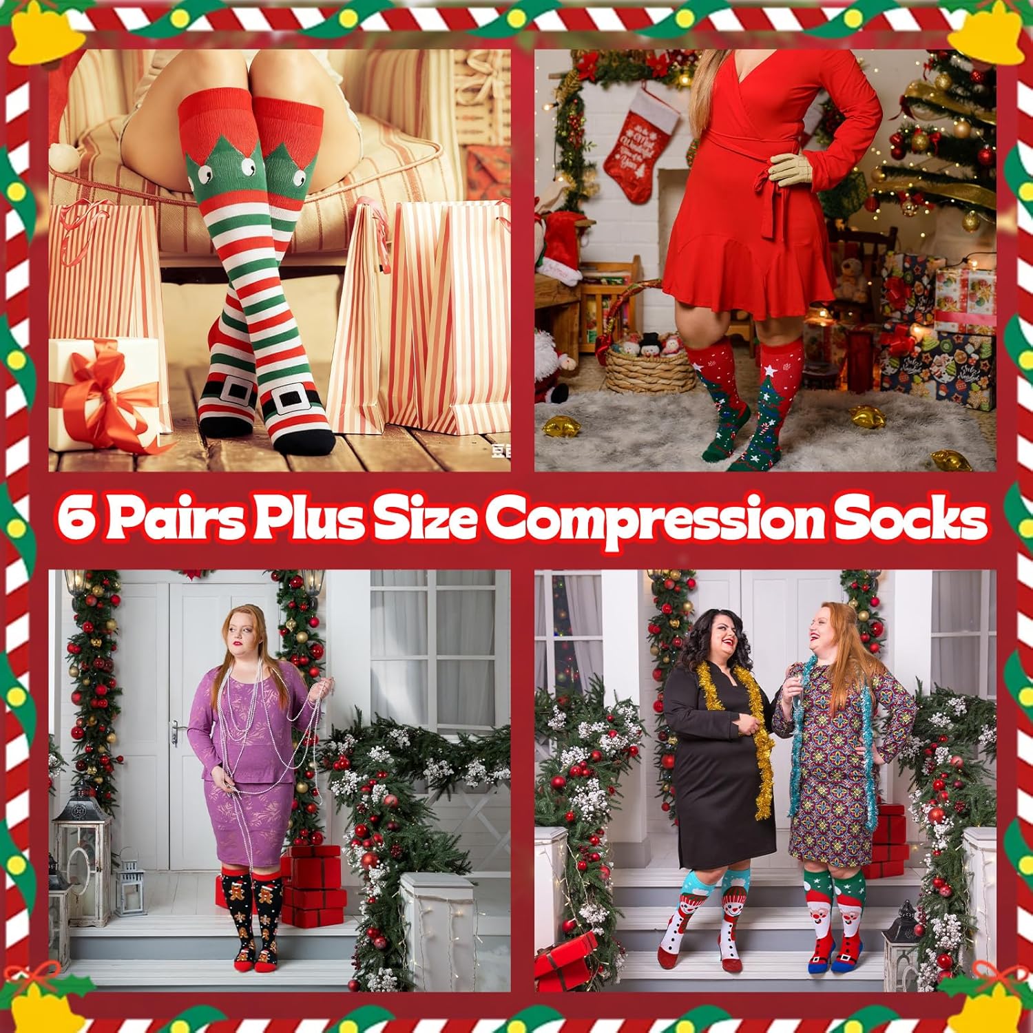 Plus Size Compression Socks: You will receive 6 pairs wide calf compression socks in 6 styles, crafted from softness, and moisture-wicking nylon materials. Providing superior support and elasticity to ensuring your legs stay energized throughout the day