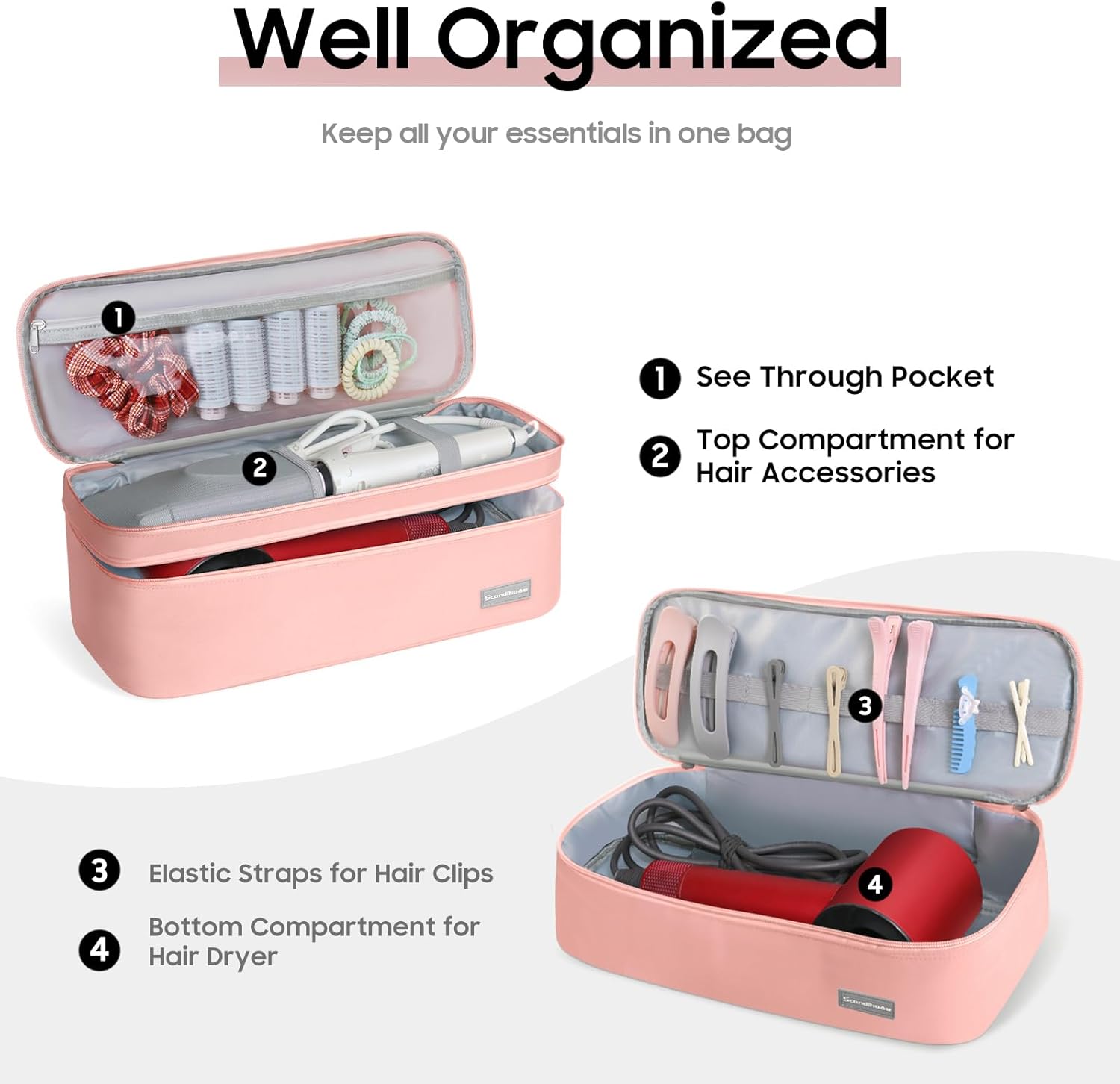 Versatile Use for Hair Tools and More Not just a hair dryer bag! This versatile case can also store curling irons, straighteners, and even double as a makeup bag. Ideal for keeping your styling essentials organized and accessible whether at home or on the go.