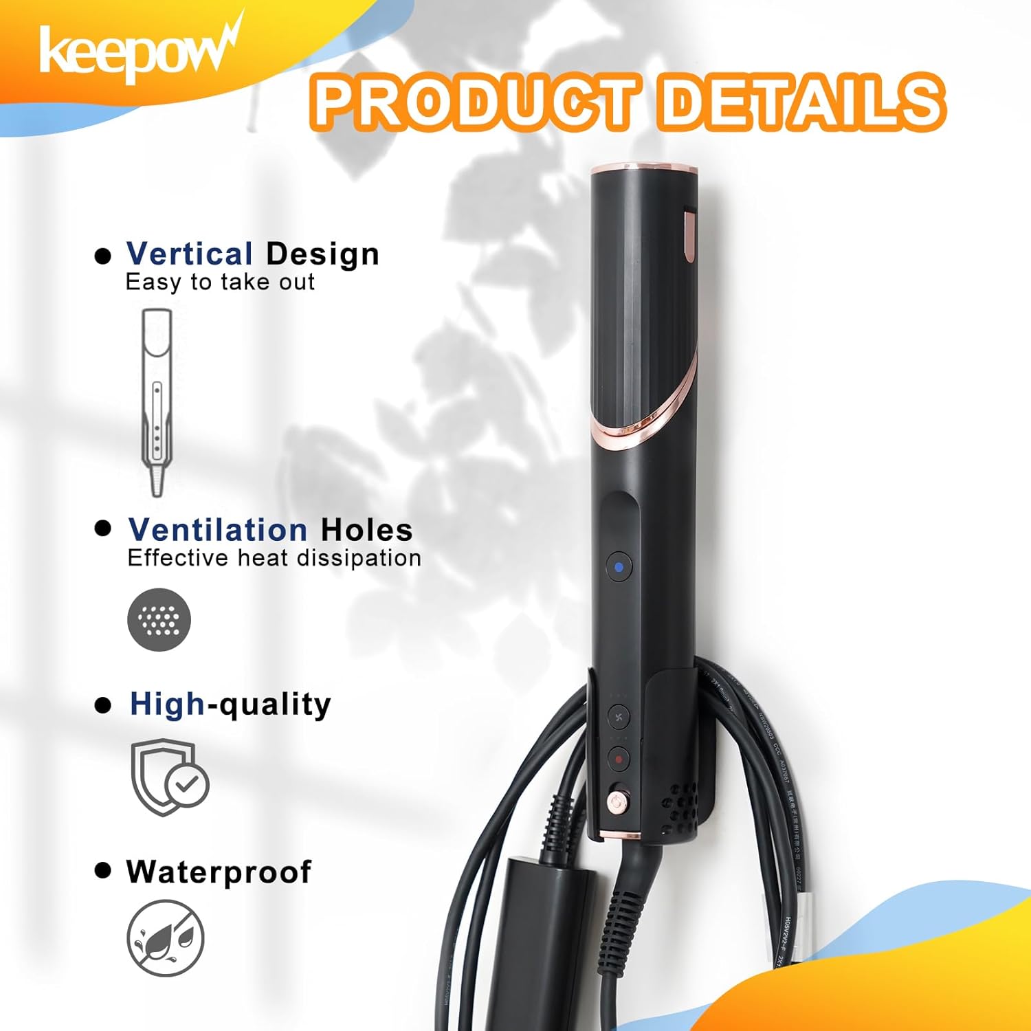 This mount vertically holds curling iron on the wall, easily taking it out for use.