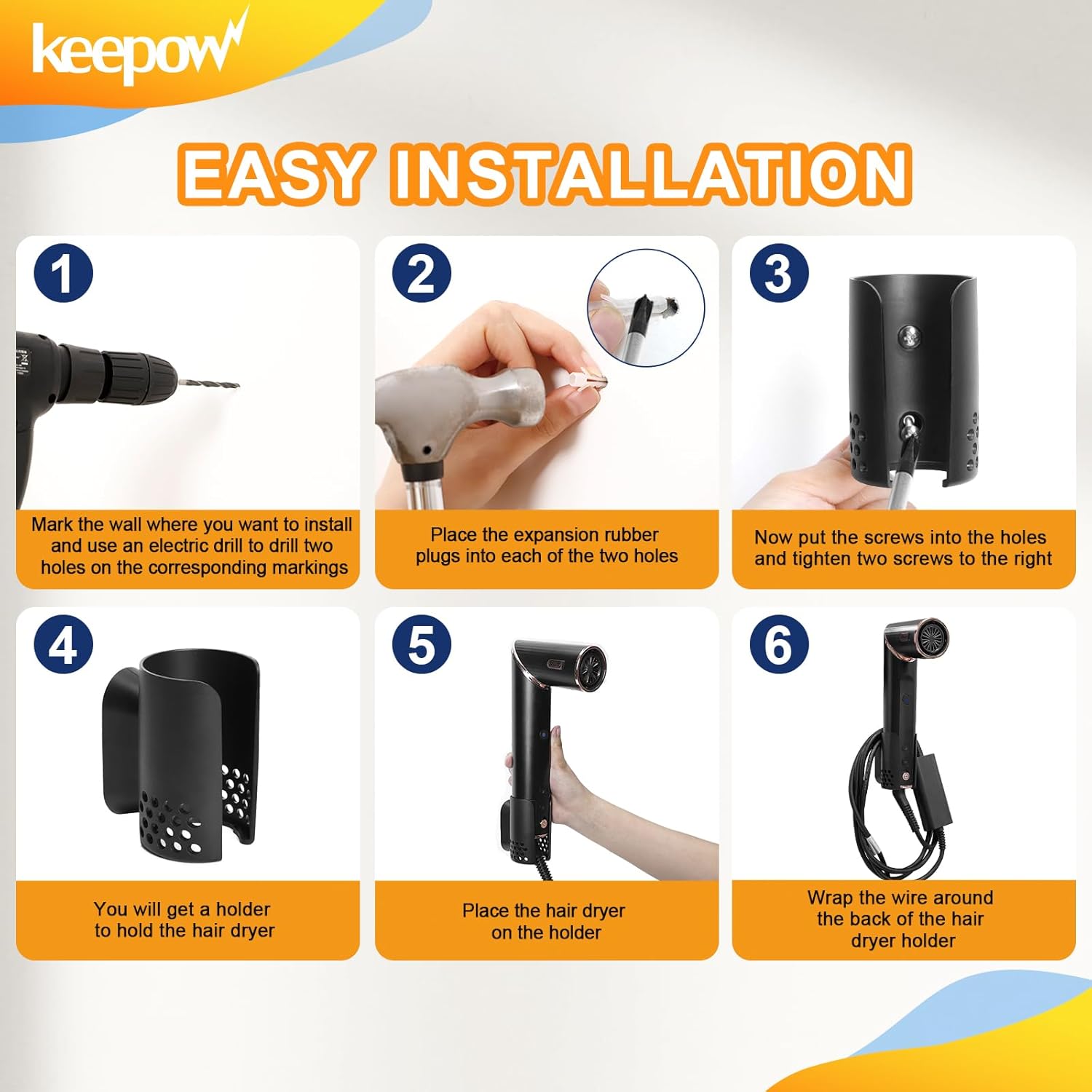 EASY TO INSTALL: The ackage includes 1 hair dryer holder, enough screws and nuts. Please read the instructions carefully before installation and feel free to contact us if you have any questions.