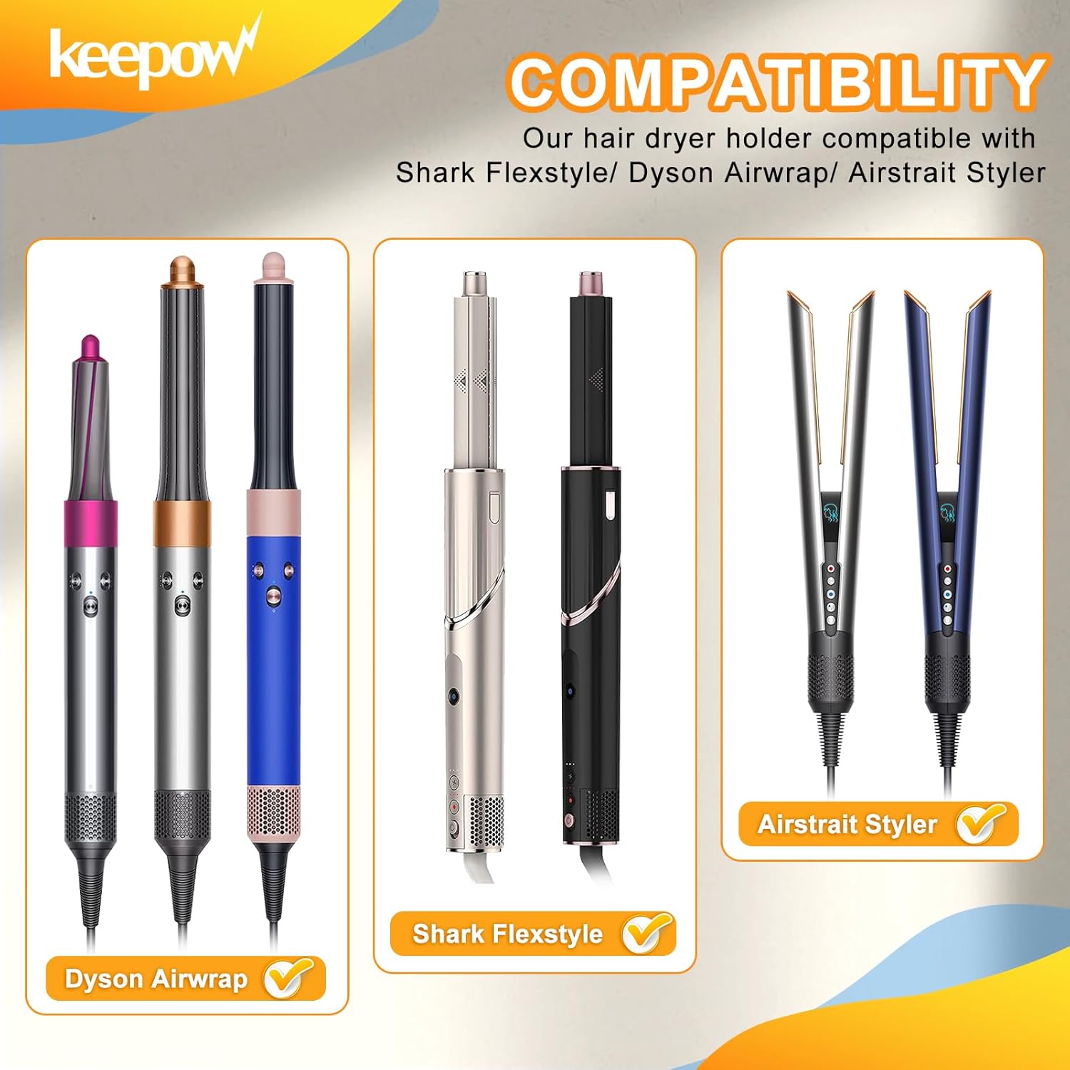 The hair dryer holder wall mount is compatible with Shark Flexstyle / Dyson Airwrap / Airstrait Styler