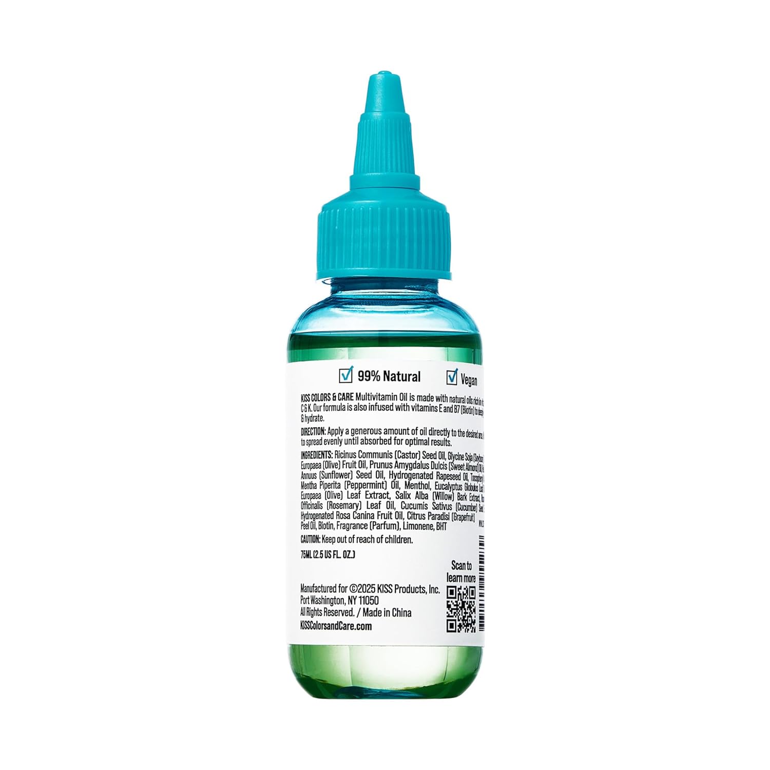 KISS COLORS & CARE Peppermint Multivitamin Oil for Hair & Skincare, Infused with Biotin, Vitamin E and Natural Oils for Long-Lasting Hydration & Repair, 2.5 fl. oz.