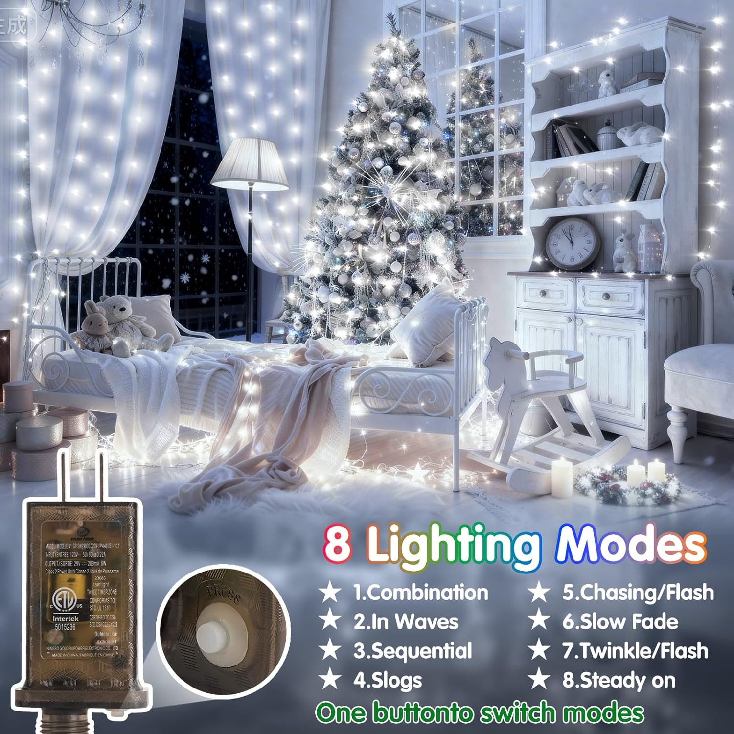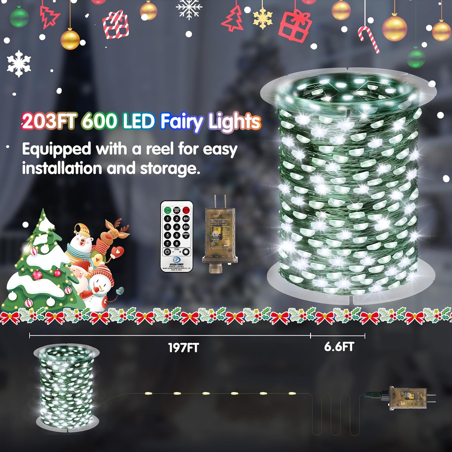 600 LED Fairy Lights:2024 latest upgraded lamp beads, 600LEDs 203FT super long green copper wire string light, IP44 waterproof, 8 lighting modes,UL Listed. Fairy lights very suitable for decorating Christmas, Wedding, Thanksgiving