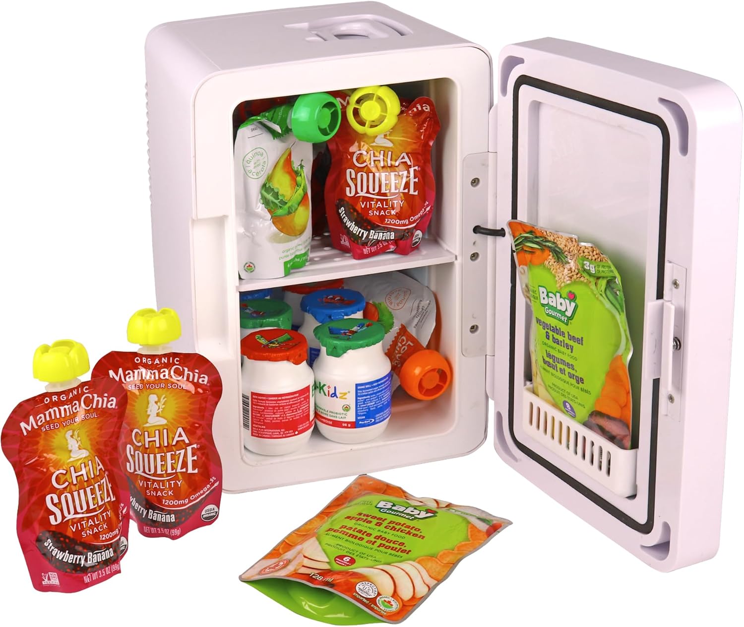 This compact personal cooler features a 6L (6.3 qt) capacity with door basket and removable shelf, giving you plenty of space to transport and store beauty products, beverages, snacks, medication, baby bottles, and so much more