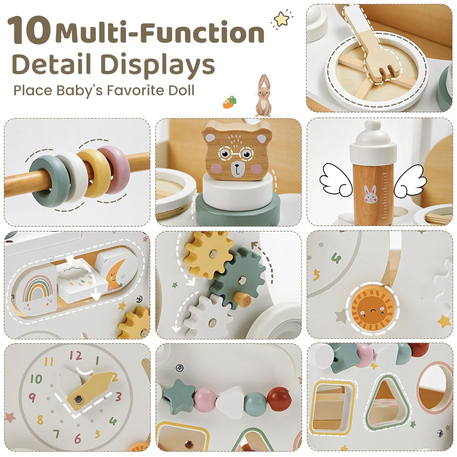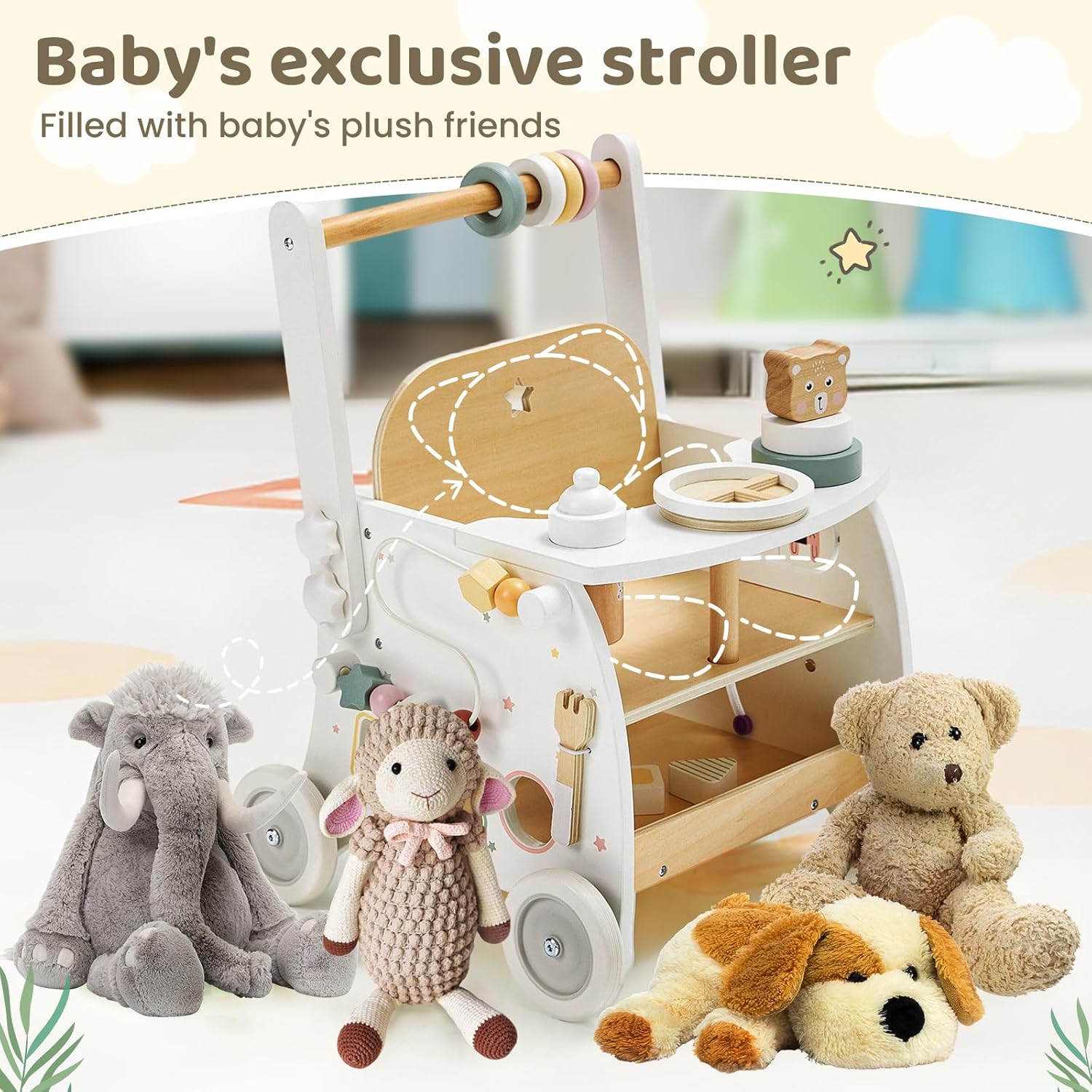 labebe Multifunctional Walker: Our doll stroller handcart walker is a veritable multifunction baby walker, comes with activity center and storage. It can be used to place dolls, when they can walk steadily, let babies can push this walker alone with their favorite doll toys everywhere encourage babies’ balance coordination, perfect for early learning and walking development.