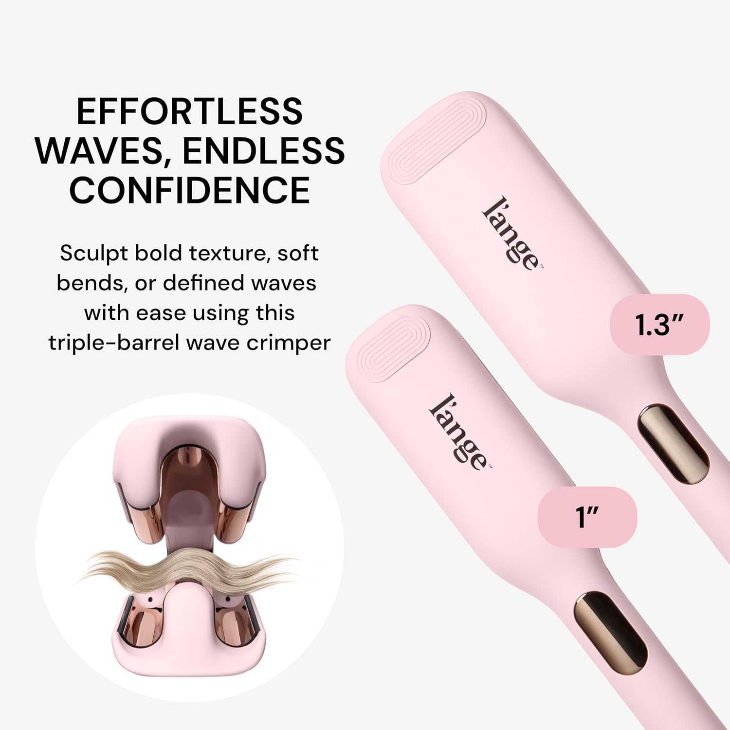 L’ANGE HAIR SculptWaver Titanium Deep Wave Crimper | Modern Crimper for Easy, Uniform Waves & Sculpted Texture | Negative Ion Technology for Frizz-Free Shine & Smooth Hair (Blush – Large)