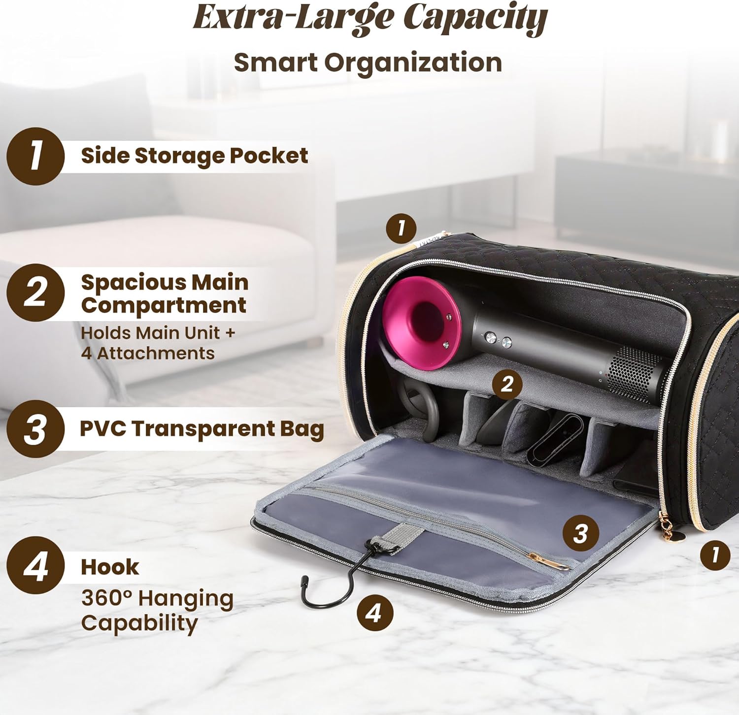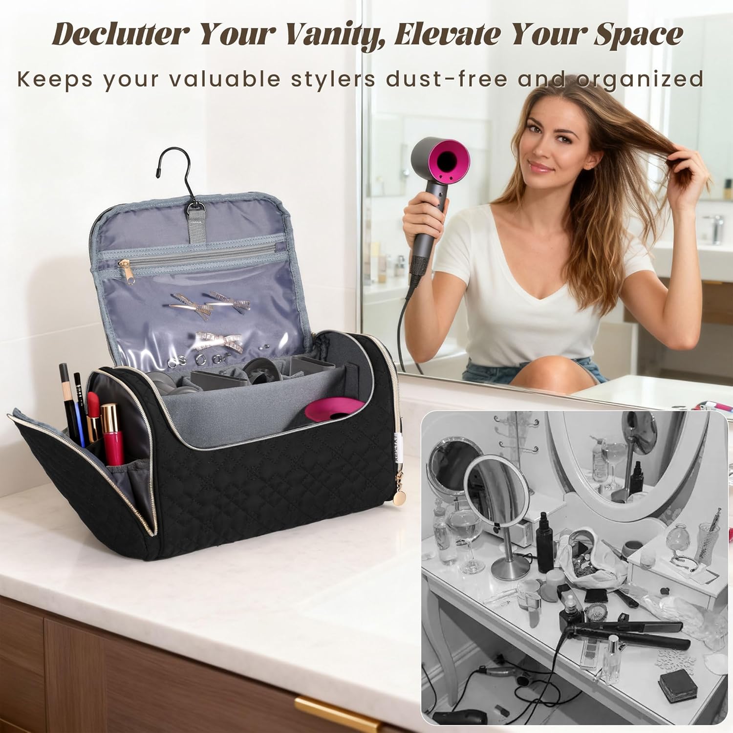 đ ăExtra-Large Capacity & Smart OrganizationăFeatures a spacious main compartment and removable interior dividers, designed to simultaneously store the hair dryer main unit and 3-4 styling nozzles or brushes. This all-in-one bag organizes all your hair tools, so you never have to choose what to leave behindâperfect for travel and keeping your home tidy. Easily customize the interior layout to fit other styling tools or different storage needs.