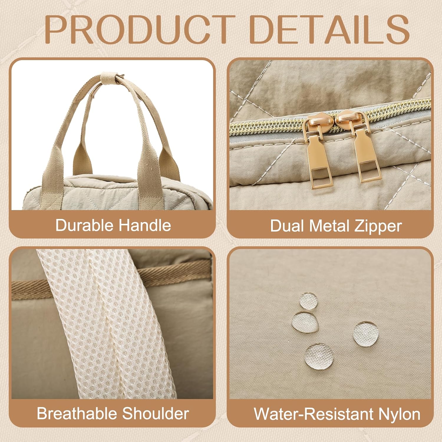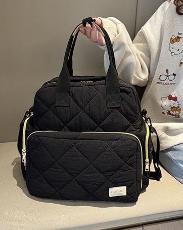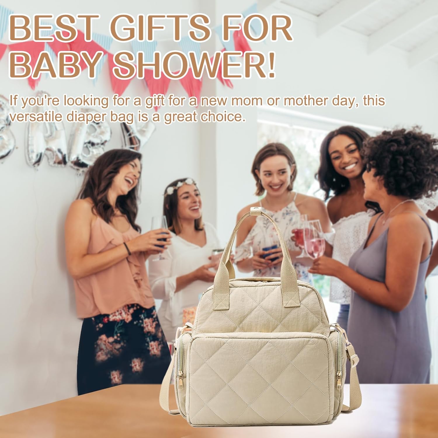 【WATERPROOF NYLON WITH QUILTED EMBROIDERY】This large diaper tote bag is durable, The shoulder straps and handle are double-stitched so they won’t tear easily when carrying heavy essentials. The surface is well-made nylon material that is waterproof and easy to clean. The lining is made of fabric that is easy to wipe clean. No worrying about milk or water spills.