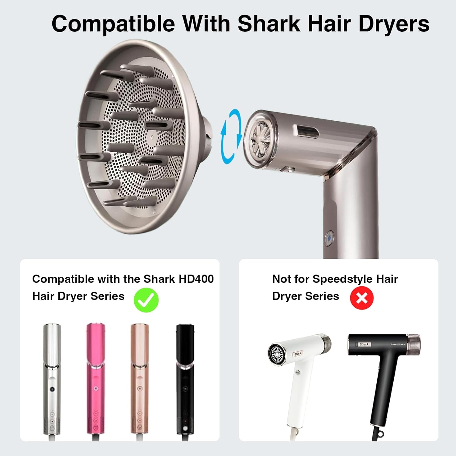 Designed for Shark: This shark flex style diffuser attachment effortlessly connects with your Shark FlexStyle HD400 series, featuring tool-free installation and easy cleaning for a hassle-free styling experience