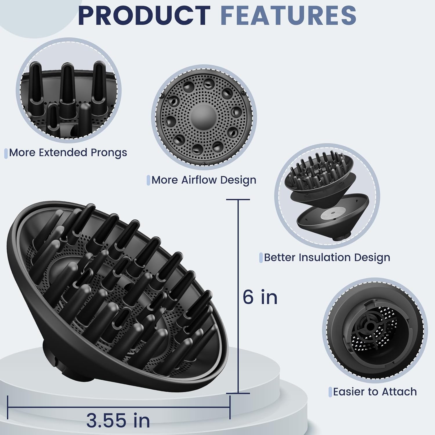 Salon-Quality Results: Specifically crafted for wavy, curly, and coily hair textures, this diffuser enhances natural curls for defined and bouncy styles, delivering salon-quality results at home