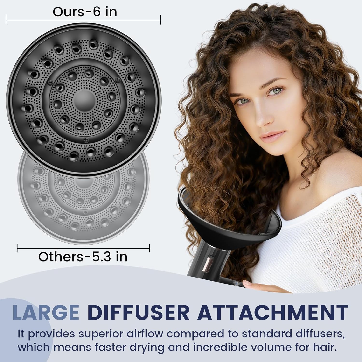 Bigger Size Faster Drying: This 6 inches large diffuser attachment is not the same as the regular 5.3 inches diffuser. It provides superior airflow compared to standard diffusers, which means faster drying and incredible volume for hair