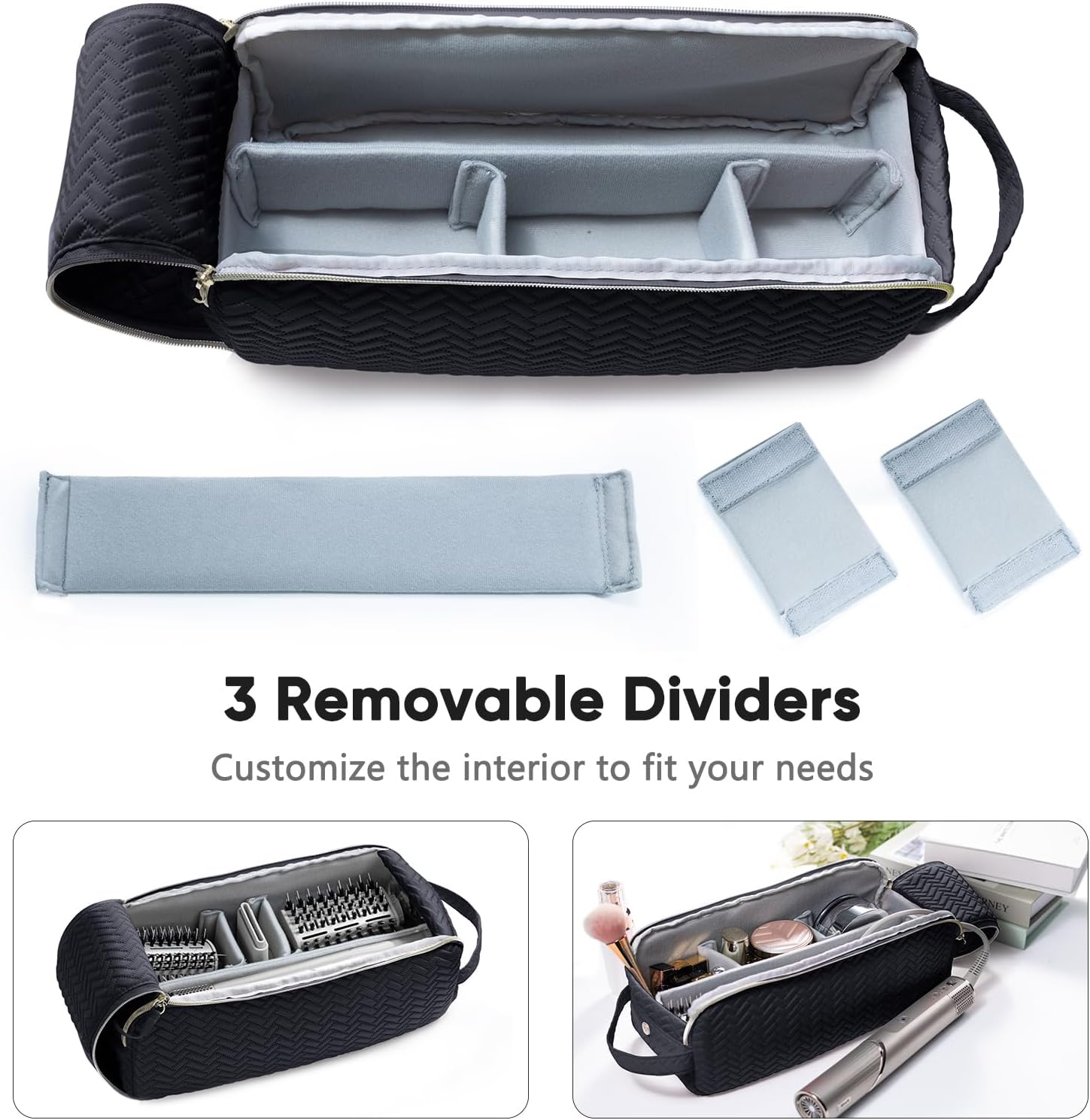 ✅ Sturdy & Travel-Ready Design Made with quilted padded fabric and 5% spandex for stretch and breathability. Protects your styling tools from scratches and dust while keeping them neatly stored in your suitcase or carry-on. Smooth custom metal zippers, reinforced stitching, and an inner zippered pocket for accessories make this bag stylish, functional, and built to last.
