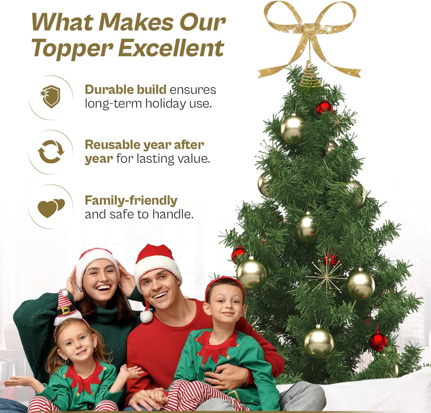Ultimate Festive Centerpiece: Transform your tree into a breathtaking holiday focal point. This elegant gold bow christmas tree topper instantly radiates joy and completes your Christmas decorating vision with timeless style.