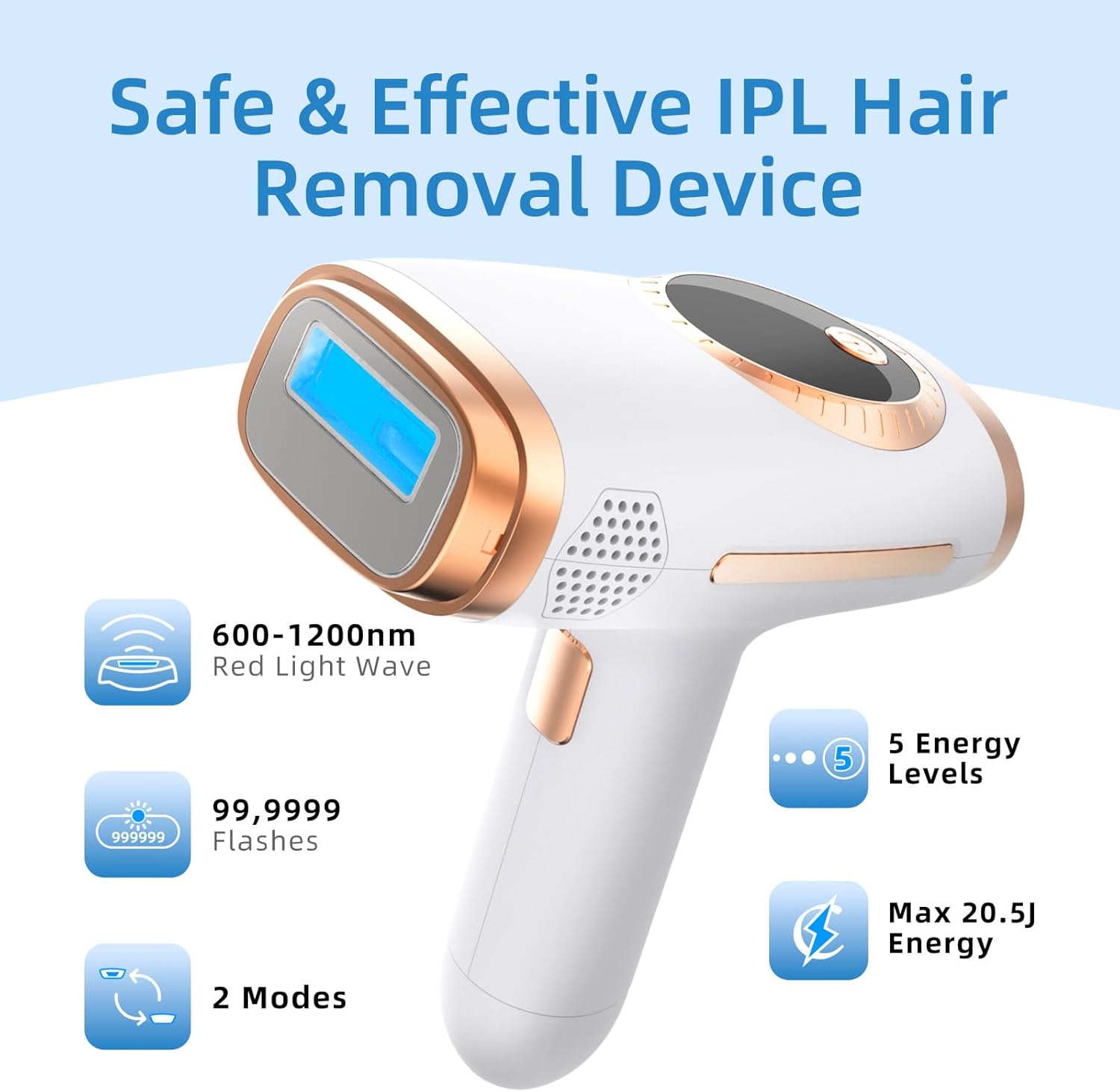 【Dual Modes & 5 Energy Levels】: Auto Mode (for legs/back) & Manual Mode (for bikini/underarms/upper lip/beard) with 5 adjustable intensities. For the first time start at Level 1, then adjust upward based on skin tolerance. Higher levels accelerate results to give you the best results.