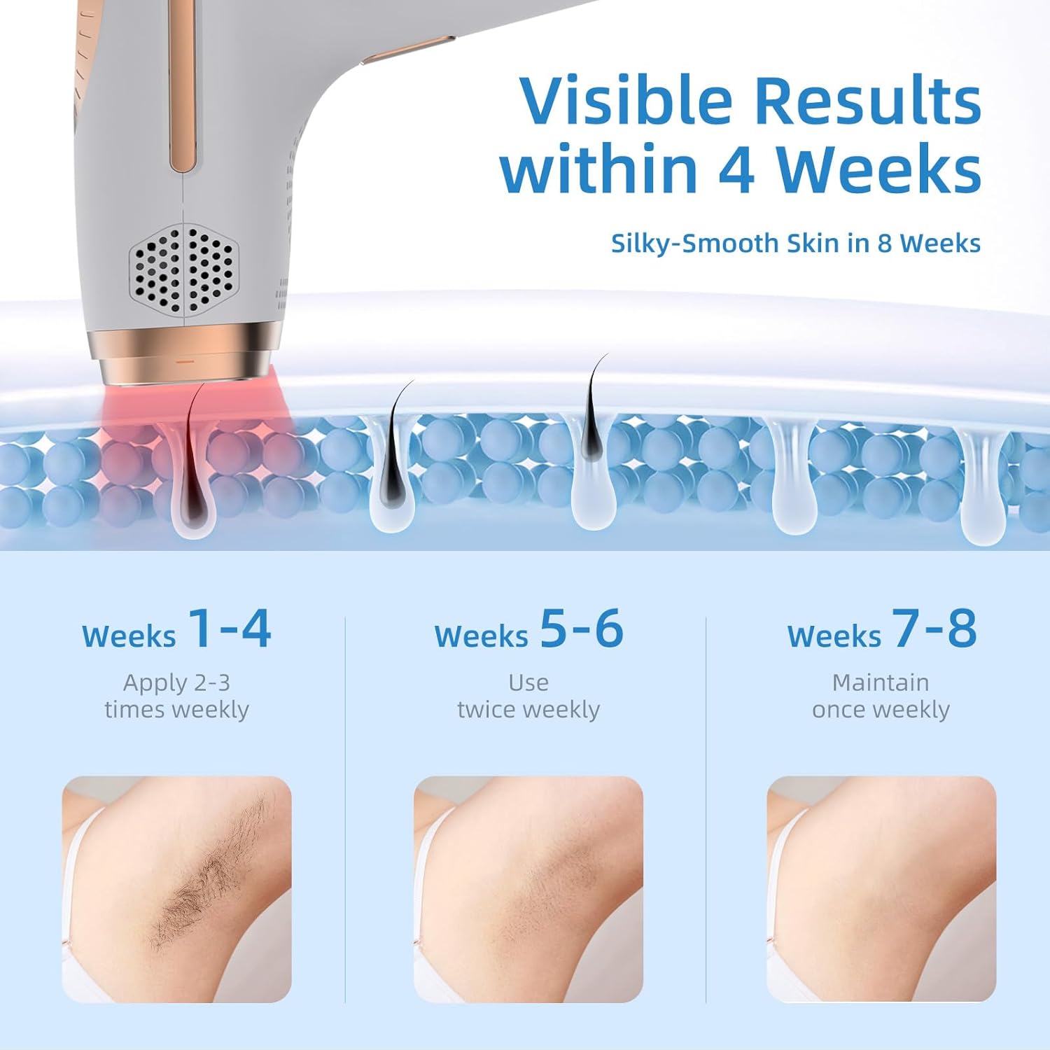 A: Yes,Hair removal devices primarily use IPL (Intense Pulsed Light) or laser technology to target melanin in hair follicles, inhibiting regrowth. It can be effective in 4 weeks, smooth skin in 8 weeks, and long-term use is recommended
